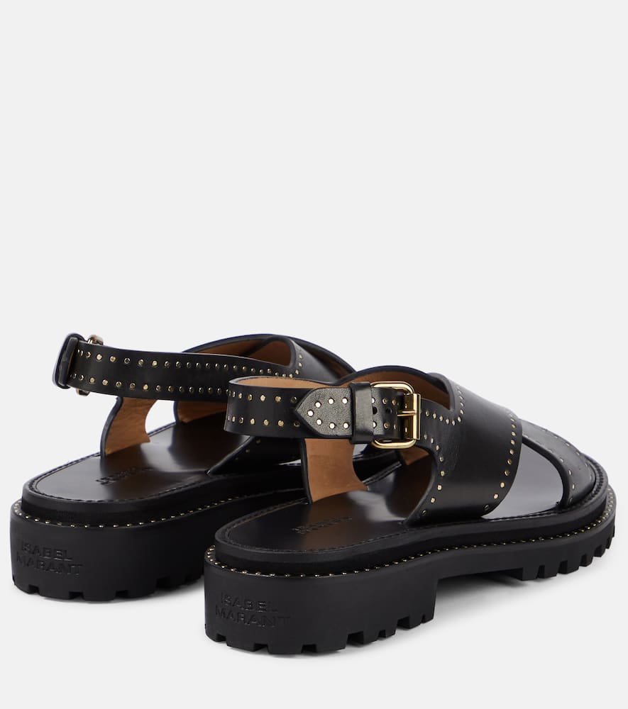 Upper: leather. Lining: leather. Sole: leather insole, rubber sole. Toe shape: round open toe. Made in Portugal. Includes: dust bag, shoe box. Designer color name: Black. Closure: buckle fastening. Shop the latest Isabel Marant Flat Sandals for women now.