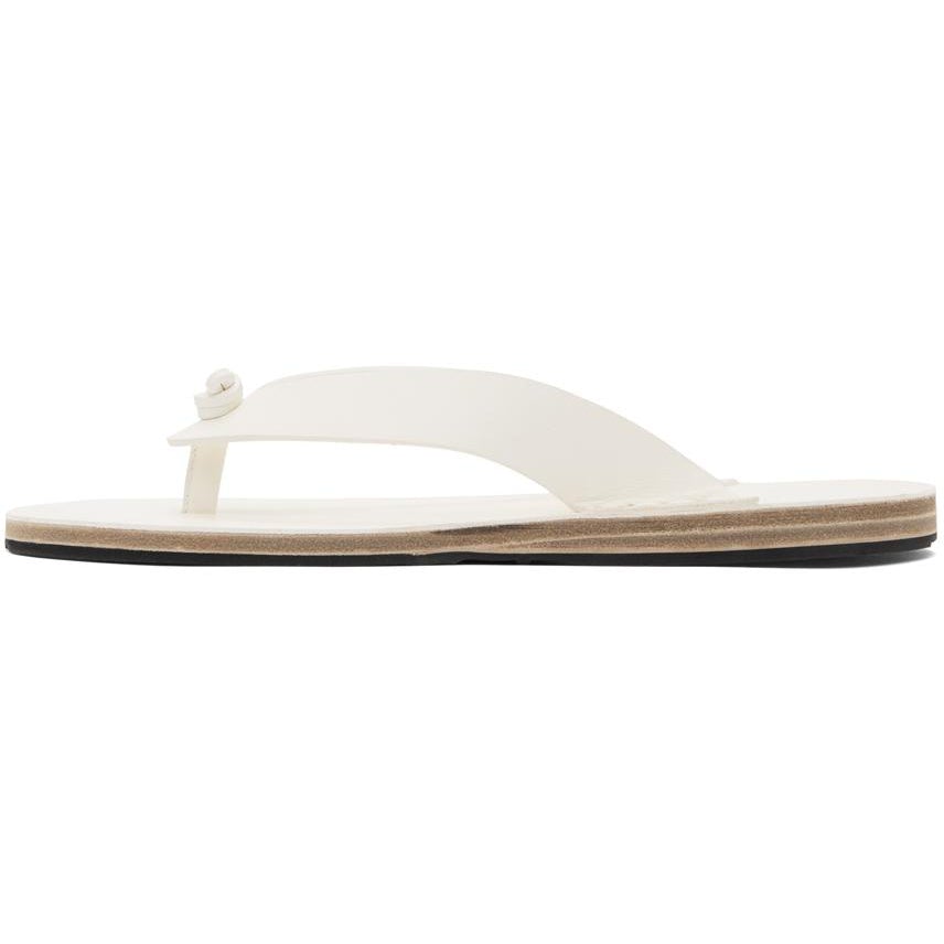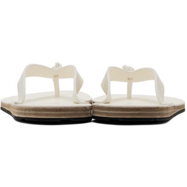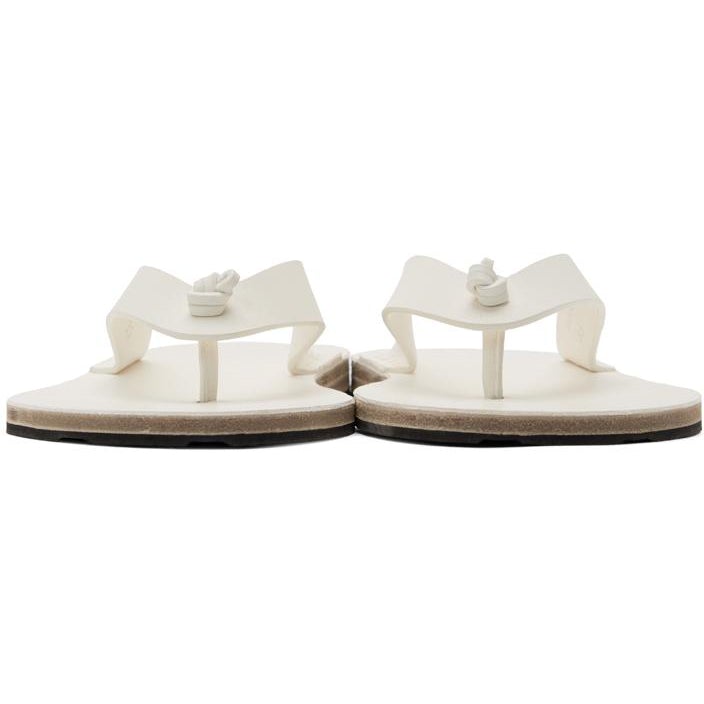 Buffed leather slip-on sandals in white. Open toe. Logo embossed and stud detailing at tonal leather footbed. Stacked leather sole in beige. Rubber outsole in black. Gold-tone hardware. Supplier color: White Upper: leather. Sole: leather, rubber. Brand: Jil Sander