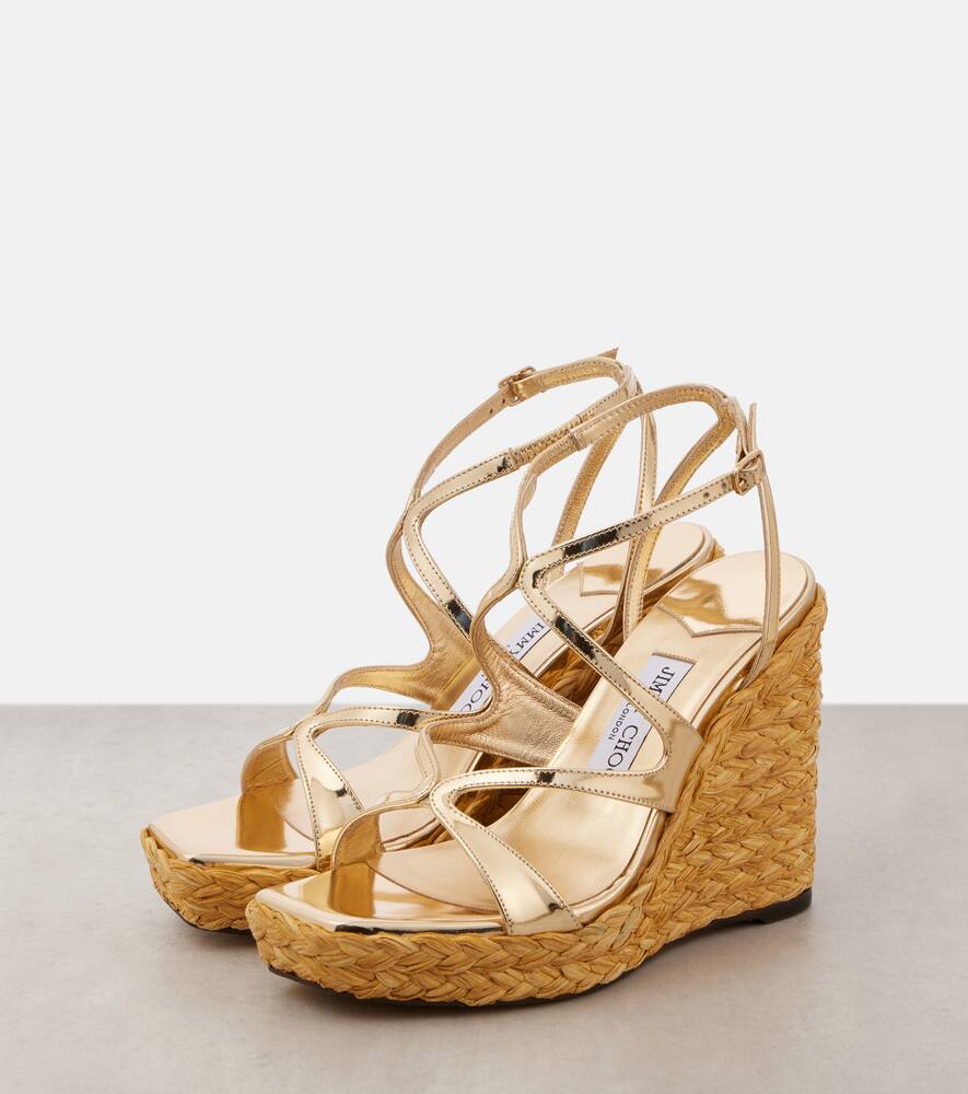 Upper: leather. Lining: leather. Sole: leather insole and sole. Toe shape: square open toe. Made in Italy. Includes: shoe box, dust bag. Designer color name: Gold. Closure: buckle-fastening ankle strap. Hardware color: gold. Shop the latest Jimmy Choo Flat Sandals for women now.