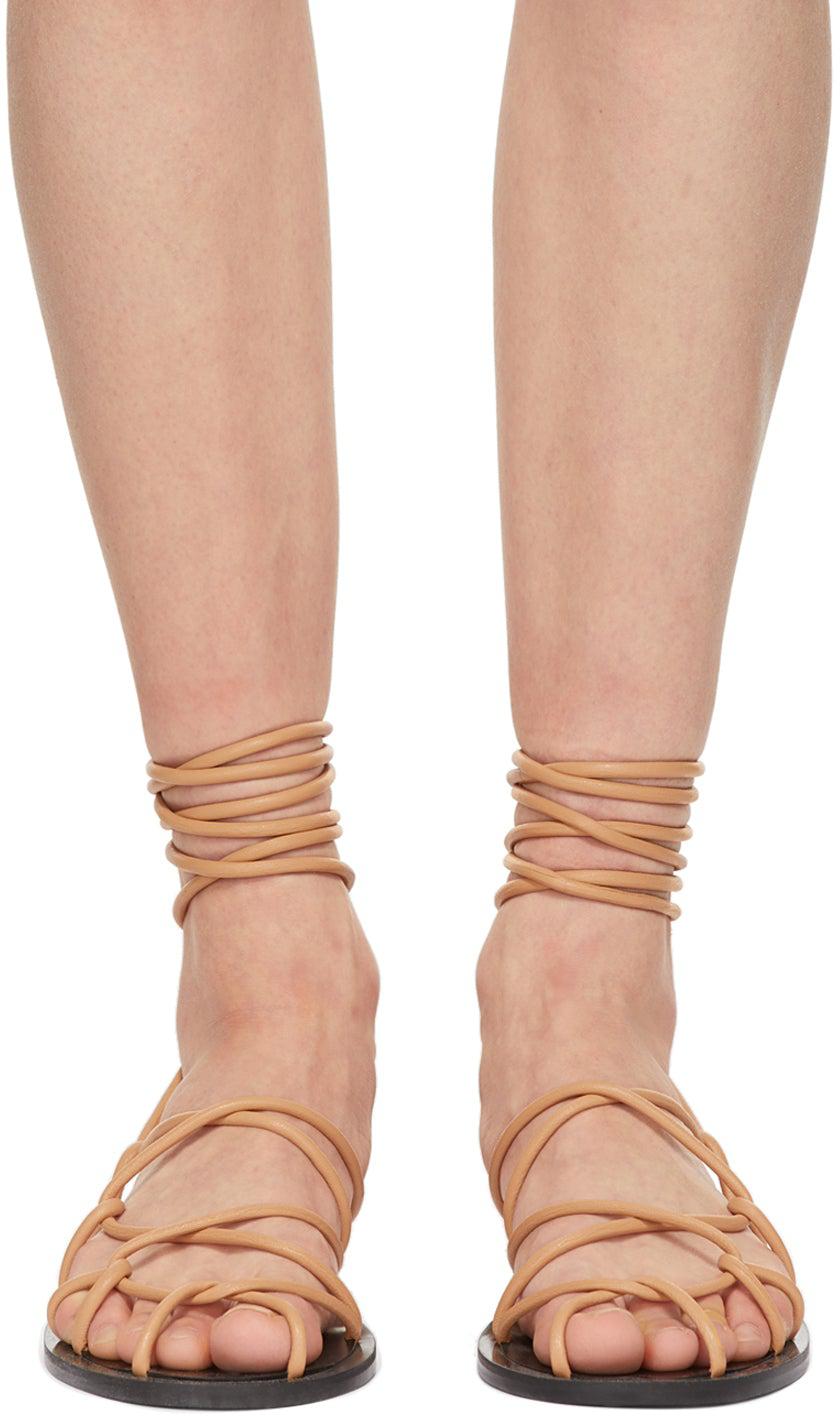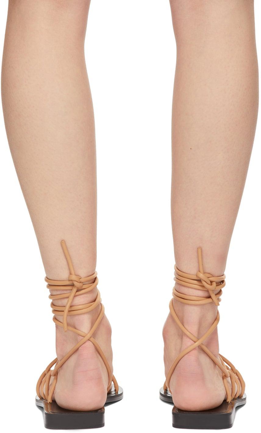 Buffed nappa lambskin sandals in beige. Open round toe. Wraparound ankle straps with self-tie fastening. Embossed logo at leather footbed in black. Leather outsole in black Supplier color: Beige Lambskin. Brand: Khaite