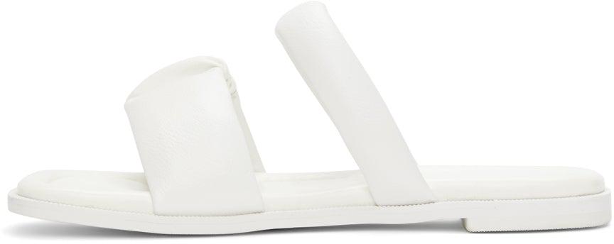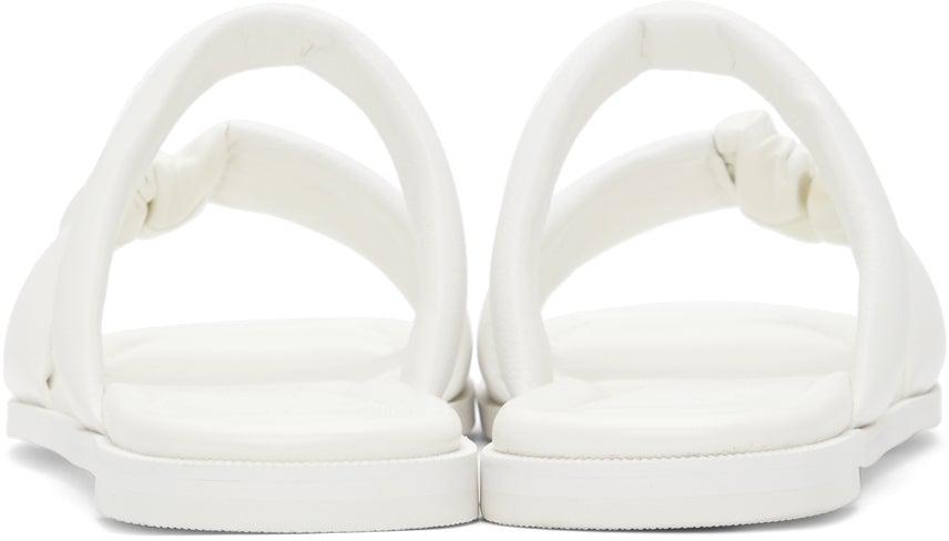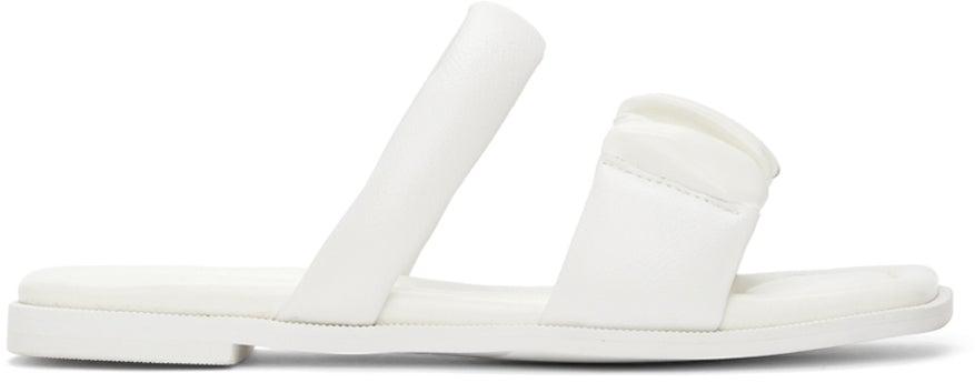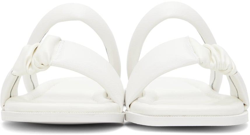 Grained leather sandals in white. Open square toe. Gathering at strap. Padded buffed leather footbed. Tonal textured rubber outsole. Supplier color: White Upper: leather. Sole: rubber. Brand: Kim Matin