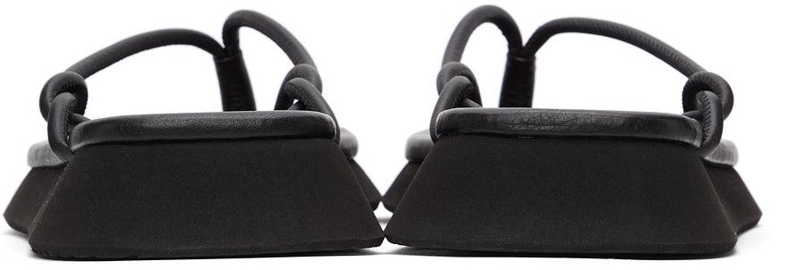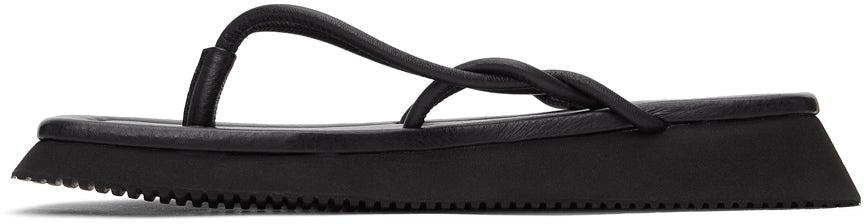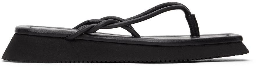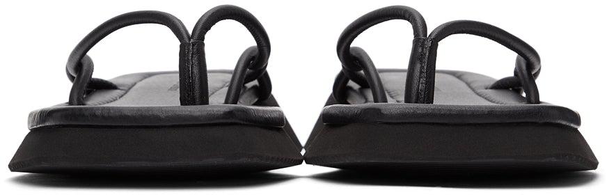 Buffed leather slip-on sandals in black. Open square toe. Thong-style strap featuring braided detailing at vamp. Logo embossed and topstitching at tonal buffed leather footbed. Tonal foam rubber midsole. Treaded Vibram® rubber outsole in black. Supplier color: Black Upper: leather. Sole: rubber. Brand: LE17SEPTEMBRE