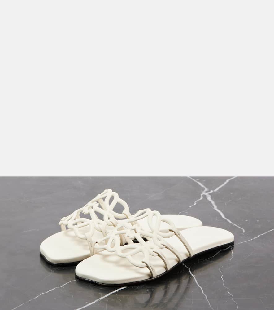 Upper: leather. Lining: leather. Sole: leather insole, leather and rubber sole. Toe shape: square open toe. Made in Italy. Includes: shoe box, dust bags. Designer color name: Anthurium White. Shop the latest Loewe Flat Sandals for women now.