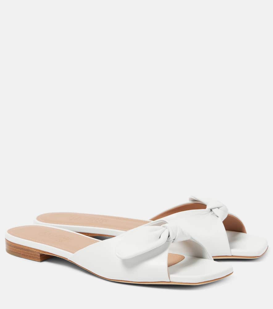 Upper: leather. Lining: leather. Sole: leather insole and sole. Toe shape: square open toe. Made in Italy. Includes: shoe box, dust bag. Designer color name: White/White. Shop the latest Malone Souliers Flat Sandals for women now.