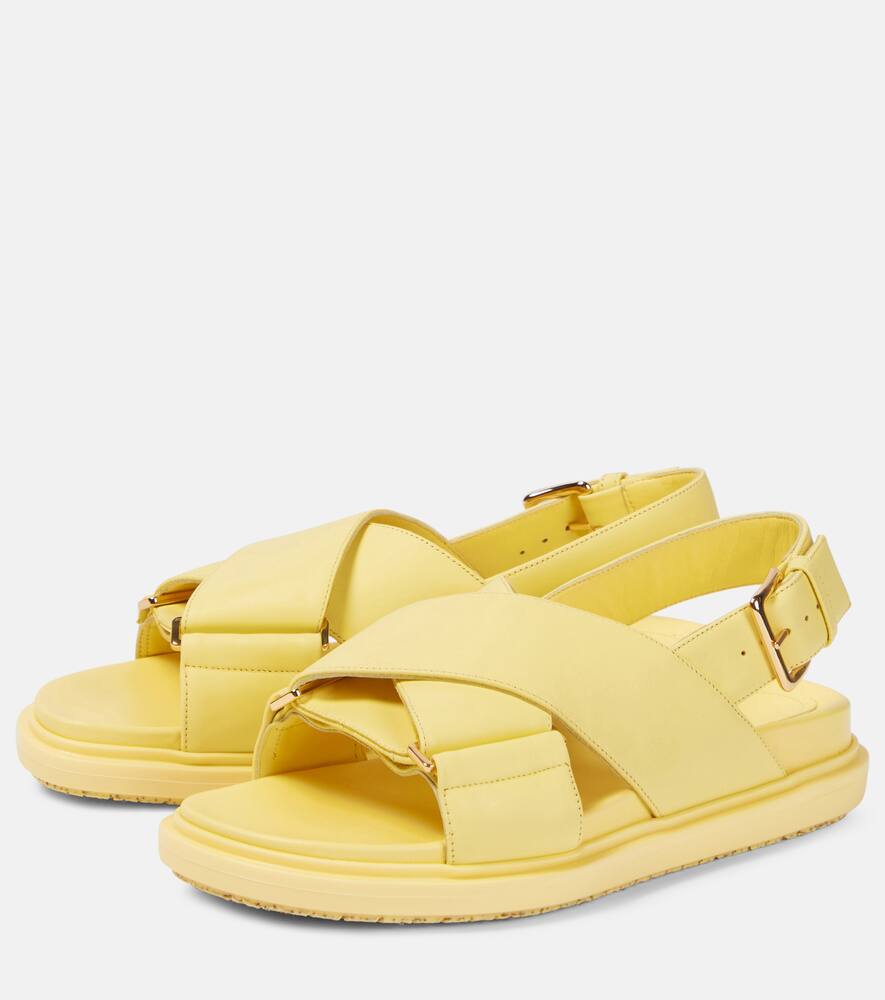 Toe shape: round open toe. Sole: leather insole, rubber sole. Comes with a box. Upper: leather. Designer color name: Pineapple. Closure: buckle-fastening ankle strap. Made in Italy. Comes with dust bags. Shop the latest Marni Flat Sandals for women now.