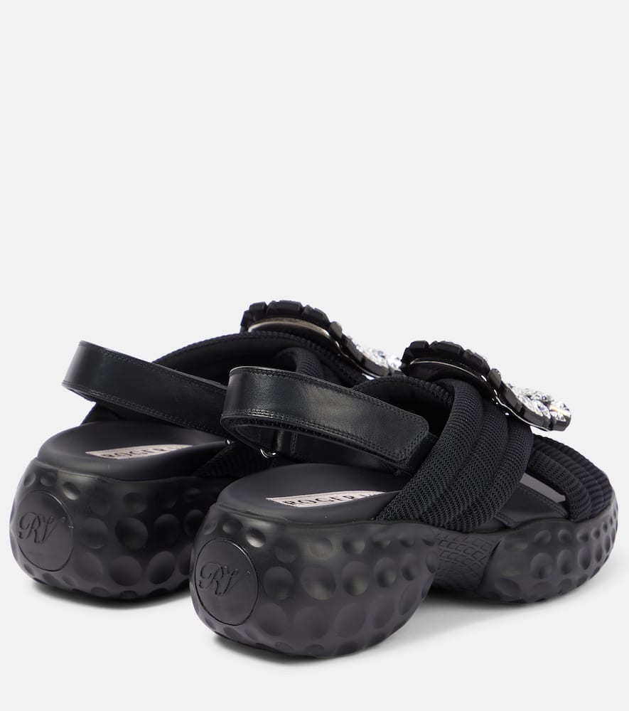 Upper: fabric. Lining: fabric. Sole: fabric insole, rubber sole. Toe shape: round open toe. Made in Italy. Includes: dust bag, shoe box. Designer color name: Nero. Trim: leather, crystal. Shop the latest Roger Vivier Flat Sandals for women now.