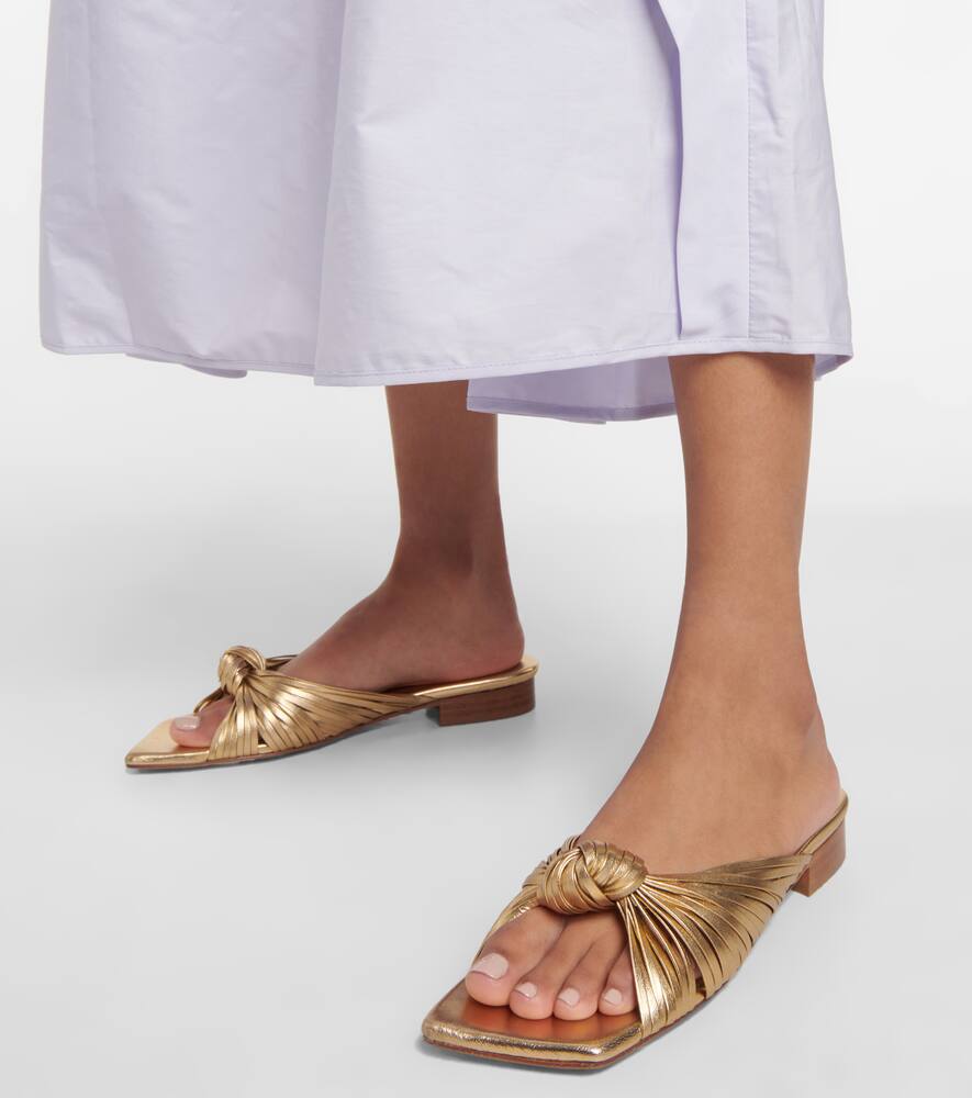Lining: leather. Sole: leather insole and sole. Upper: leather. Handmade in Spain. Toe shape: square open toe. Designer color name: Gold. Comes with a box. Comes with dust bag. Shop the latest Souliers Martinez Flat Sandals for women now.