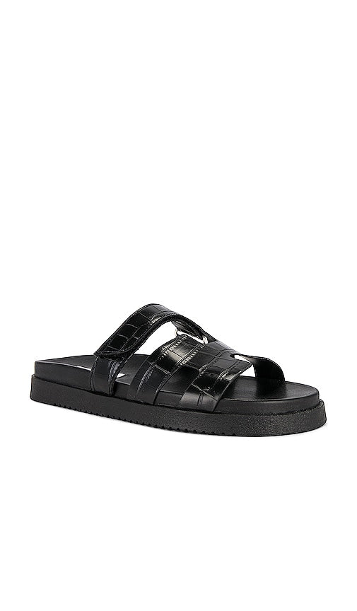 Steve Madden Mayven Sandal in Black. - size 10 (also in 6, 6.5, 7.5, 8, 8.5, 9, 9.5) Steve Madden Mayven Sandal in Black. - size 10 (also in 6, 6.5, 7.5, 8, 8.5, 9, 9.5) Croc embossed faux leather upper with manmade sole. Made in Mexico. Slip-on styling with adjustable velcro strap at forefoot. Contoured faux leather footbed. Faux leather lining. SMAD-WZ1259. MAYVEN. The effortless west coast vibe of BB Dakota has now merged with the iconic Downtown edge of Steve Madden. Introducing Steve Madden Apparel... Inspired by confident women and its youthful New York City roots, Steve Madden apparel offers bold and disruptive, yet timeless essentials. Always at the forefront of trends and reinventing style season after season, Steve Madden apparel provides you with the tools you need to become your own fashion visionary. It's about authenticity. It's about embracing individuality. It's Steve Madden. Shop the latest in fashion from Steve Madden