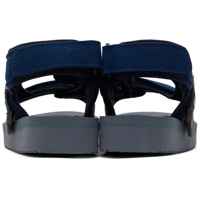 Padded bonded nylon jersey sandals in navy. Tonal faux-suede and textured rubber trim throughout. Open round toe. Adjustable webbing Velcro straps at vamp. Textile logo patches at adjustable webbing Velcro ankle strap. Tonal logo-embossed molded Vibram® EVA rubber footbed. Tonal treaded Vibram® rubber outsole. Black hardware. Supplier color: Navy Upper: textile, synthetic. Sole: rubber. Brand: Suicoke
