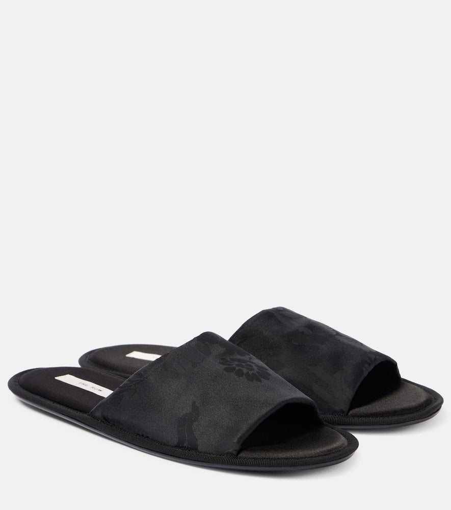 Upper: fabric. Lining: fabric. Sole: fabric insole, leather sole. Toe shape: round open toe. Made in Italy. Includes: shoe box, dust bag. Designer color name: Black. Shop the latest The Row Flat Sandals for women now.