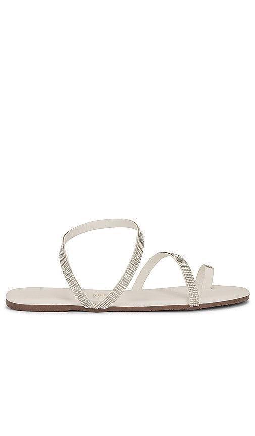 TKEES Infinity Mia Sandal in Cream. - size 10 (also in 6, 7, 8, 9) TKEES Infinity Mia Sandal in Cream. - size 10 (also in 6, 7, 8, 9) Rhinestone-embellished leather upper with rubber sole. Made in Brazil. Slip-on styling with ankle wrap. Leather footbed and lining. Toe ring detail. TKEE-WZ177. IMNA-CRM. For Jesse and Carly Burnett, the husband and wife duo behind TKEES (t-keys), it was a no-brainer Carly yearned for a sandal that would disappear on your foot. Thus, in the summer of 2009, using a simple thong sandal as their base, the couple (she with a degree from the School of Visual Arts and he with a background in business and real estate) produced a collection that was divided into color categories: Foundations, Creams, Liners, Glosses and more. Branded as cosmetics for your feet, TKEES was born, and has become the go-to sandal for easy, fresh and sophisticated everyday dressing. Shop the latest in fashion from TKEES