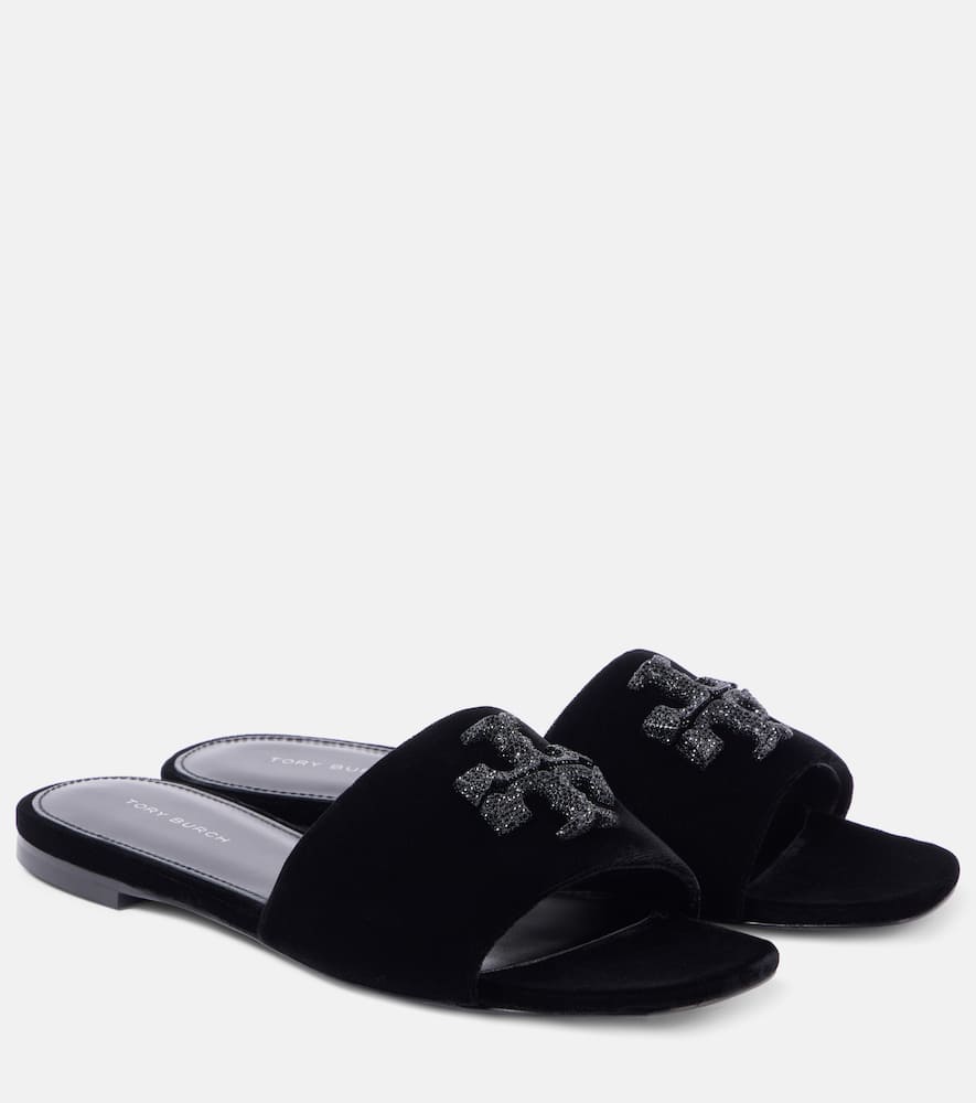 Upper: fabric. Lining: leather. Sole: leather insole and sole. Toe shape: square open toe. Made in Vietnam. Includes: shoe box. Designer color name: Perfect Black. Shop the latest Tory Burch Flat Sandals for women now.