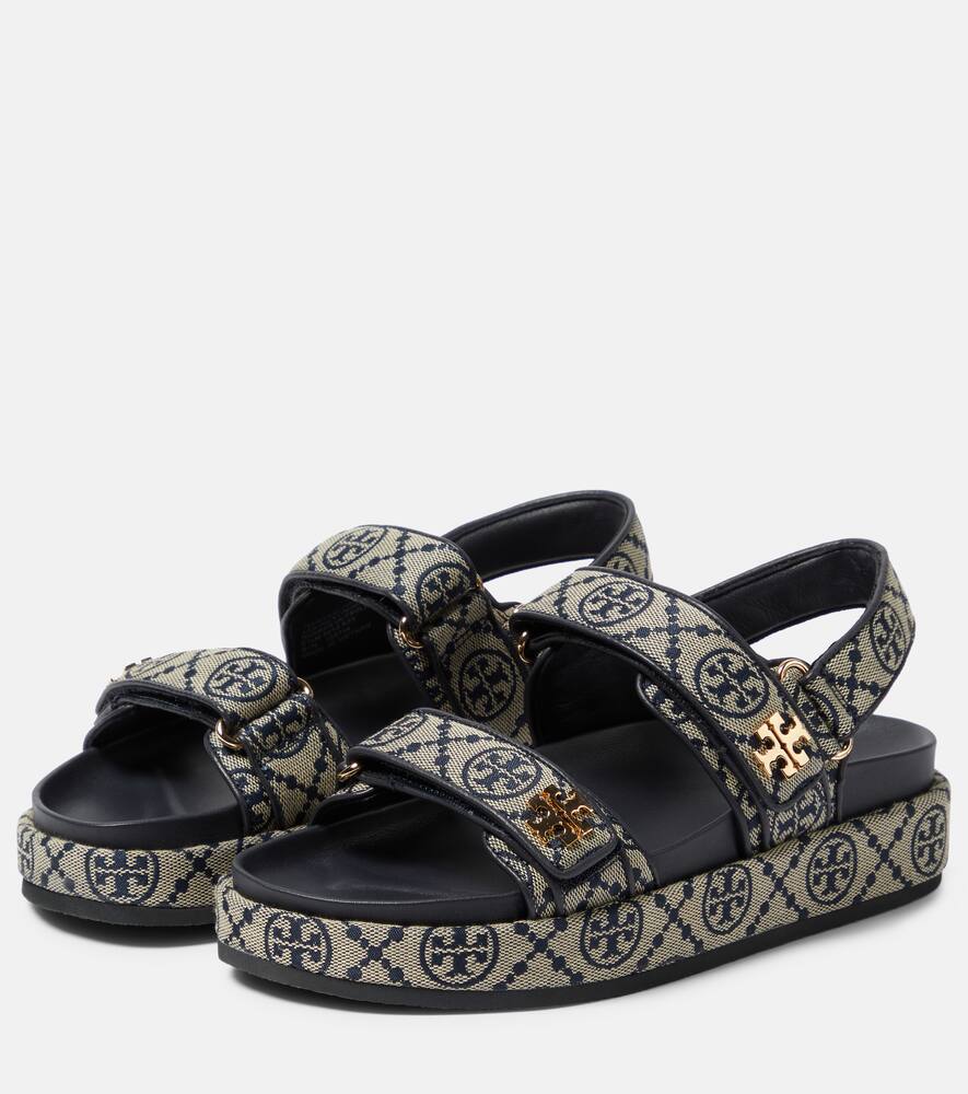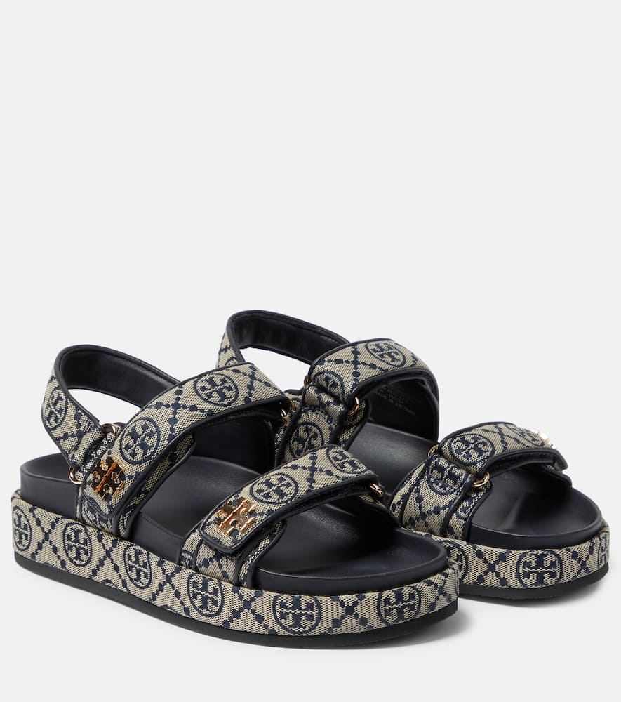 Upper: fabric. Lining: leather. Sole: leather insole, rubber sole. Toe shape: round open toe. Made in Vietnam. Includes: shoe box, dust bag. Designer color name: Perfect Navy. Closure: VELCRO® fastening. Shop the latest Tory Burch Flat Sandals for women now.