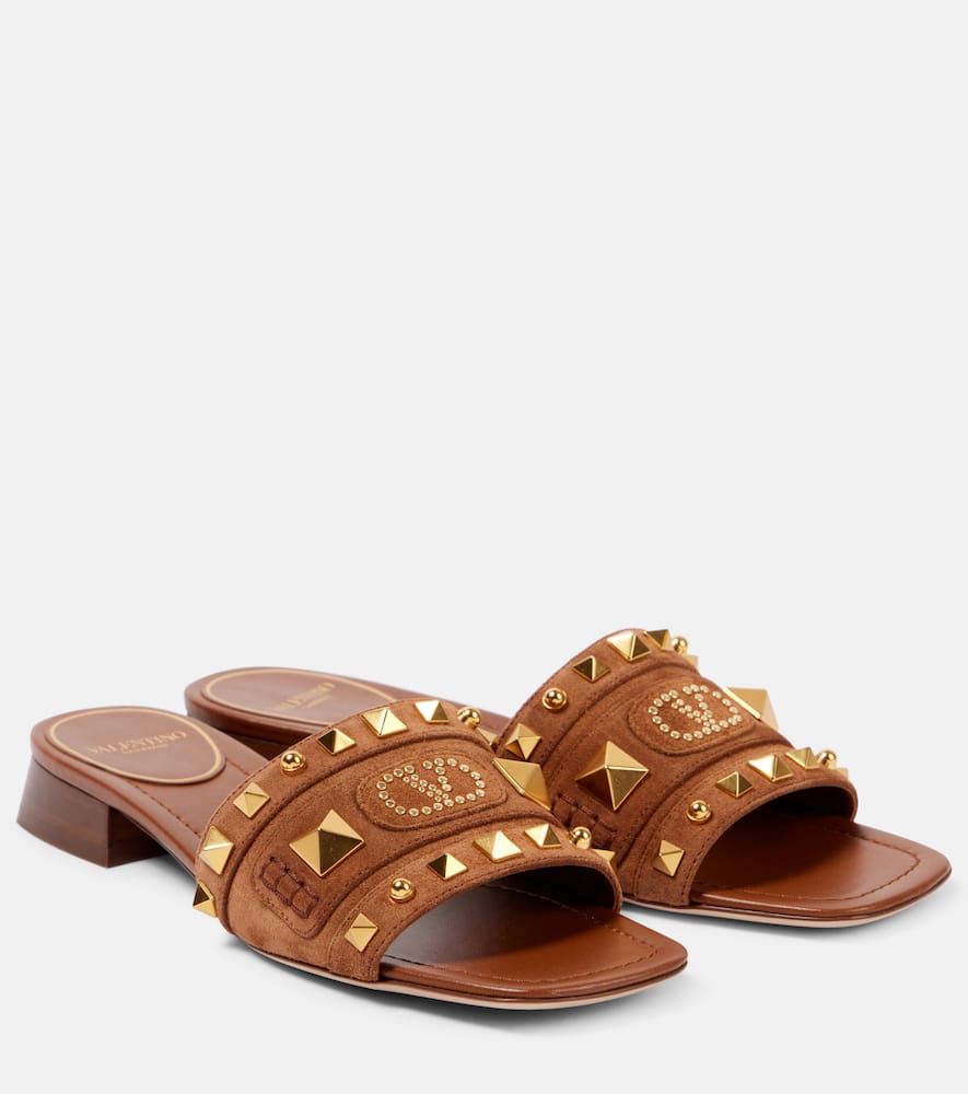 Upper: leather. Lining: leather. Sole: leather insole and sole. Toe shape: square open toe. Made in Italy. Includes: shoe box, dust bag. Designer color name: Copper Brown. Shop the latest Valentino Garavani Flat Sandals for women now.