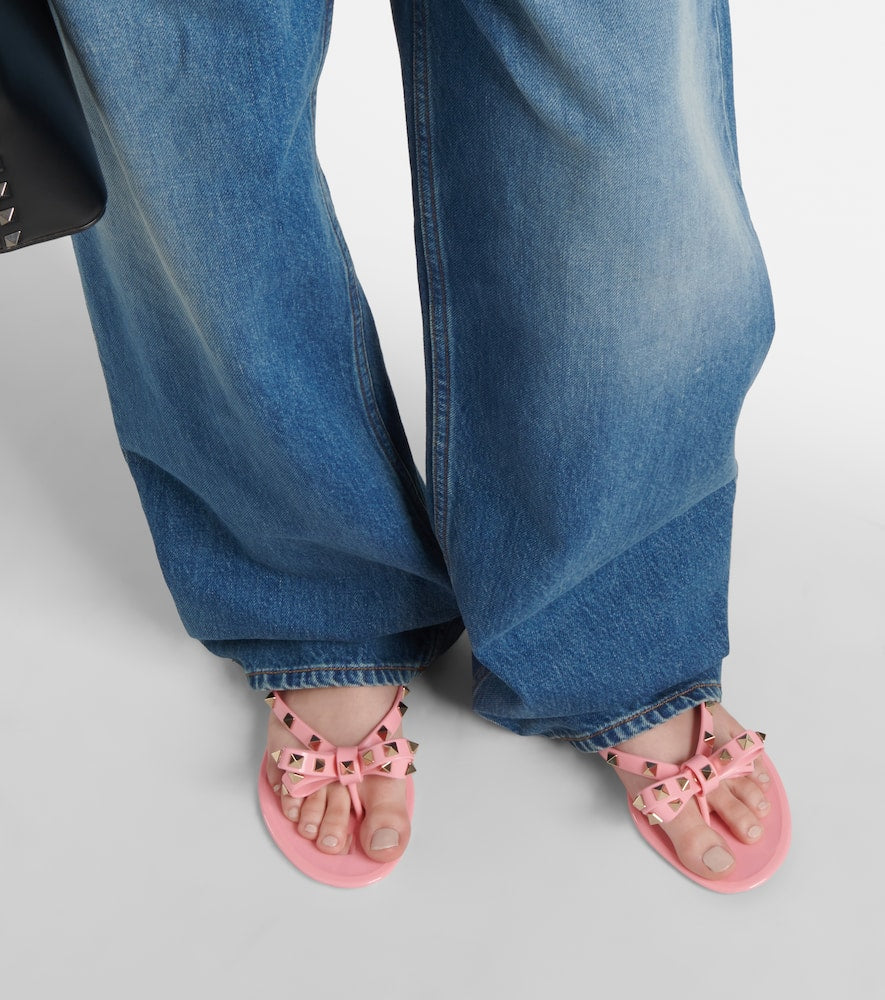 Upper: rubber. Lining: rubber. Sole: rubber insole and sole. Toe shape: round open toe. Made in Italy. Includes: shoe box, dust bags. Designer color name: Bubble. Hardware color: gold. Shop the latest Valentino Garavani Flat Sandals for women now.