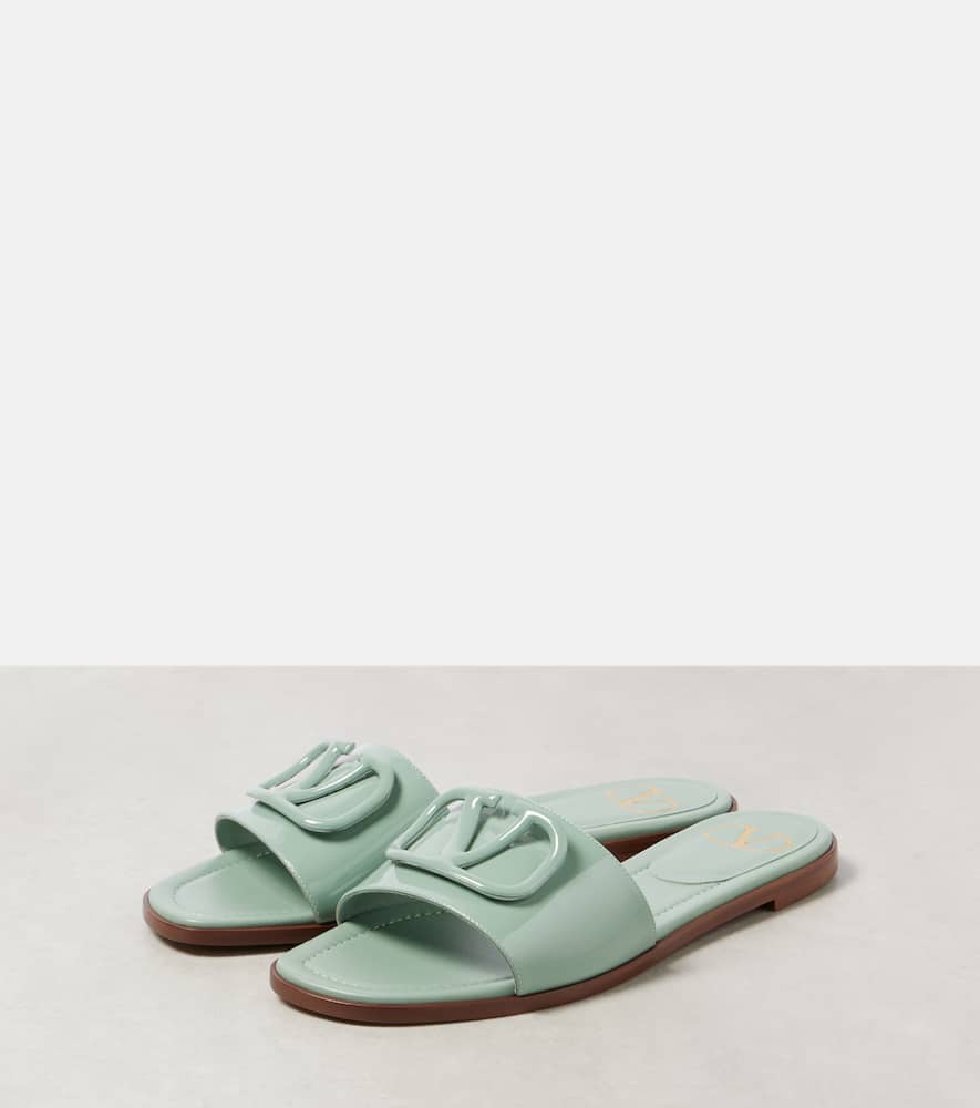 Upper: leather. Lining: leather. Sole: leather insole and sole. Toe shape: square open toe. Made in Italy. Includes: shoe box, dust bags. Designer color name: Morning Dew. Hardware color: green. Shop the latest Valentino Garavani Flat Sandals for women now.