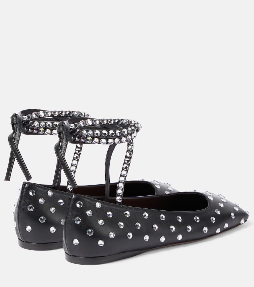 Upper: leather. Lining: leather. Sole: leather insole, rubber sole. Toe shape: square toe. Made in Italy. Includes: shoe box. Designer color name: Black. Closure: lace-up. Shop the latest Amina Muaddi Ballet Flats for women now.