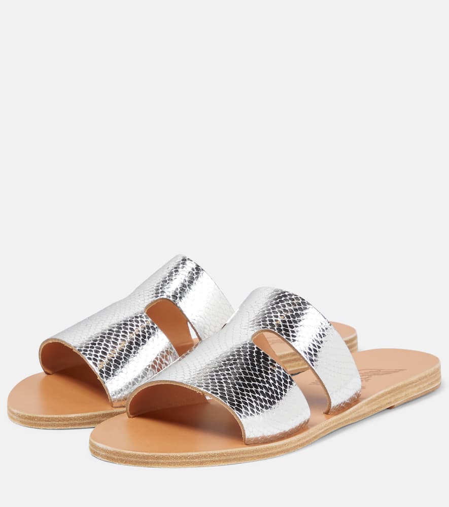 Toe shape: round open toe. Lining: leather. Sole: leather insole and sole. Upper: leather. Handmade in Greece. Designer color name: Argento. Comes with a box. Comes with dust bag. Shop the latest Ancient Greek Sandals Flat Sandals for women now.