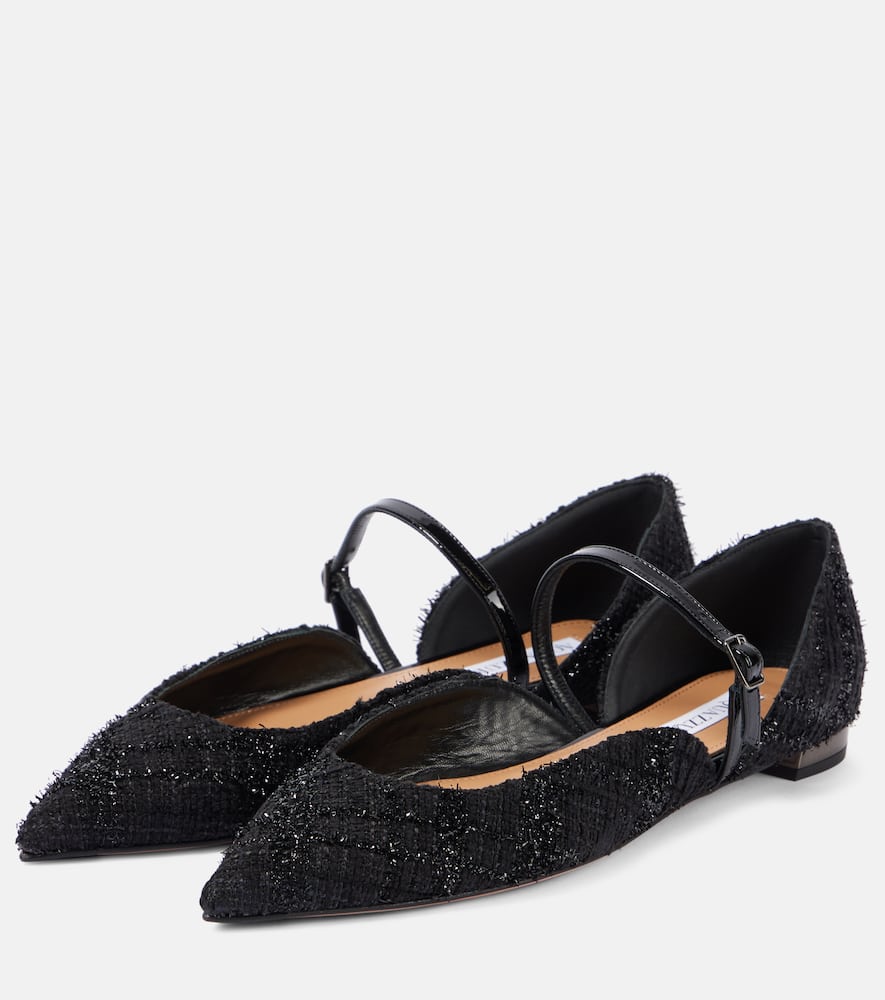 Upper: fabric. Lining: leather. Sole: leather insole, rubber sole. Toe shape: round toe. Made in Italy. Includes: shoe box, dust bag. Designer color name: Black. Trim: leather. Shop the latest Aquazzura Ballet Flats for women now.