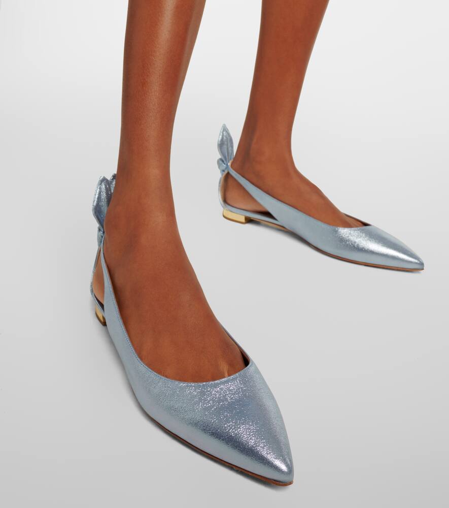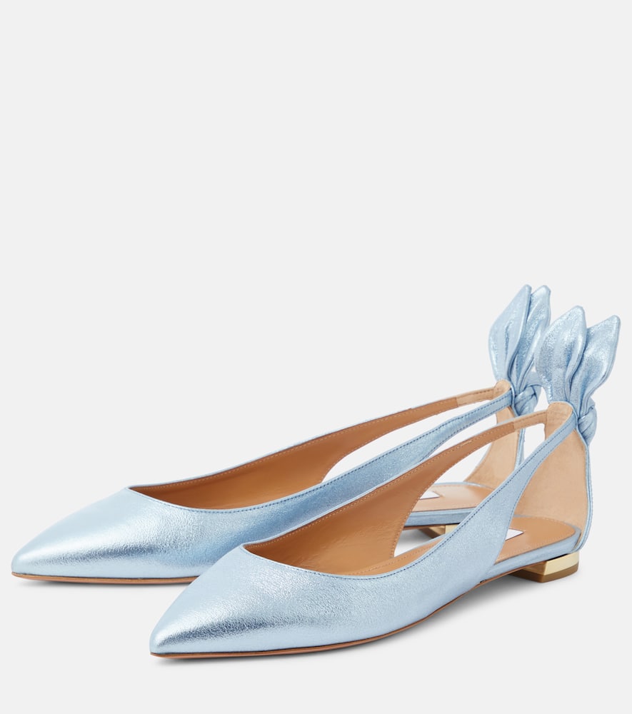Upper: goat leather. Lining: leather. Sole: leather insole and sole. Toe shape: pointed toe. Made in Italy. Includes: shoe box, dust bag. Designer color name: Pool. Shop the latest Aquazzura Ballet Flats for women now.