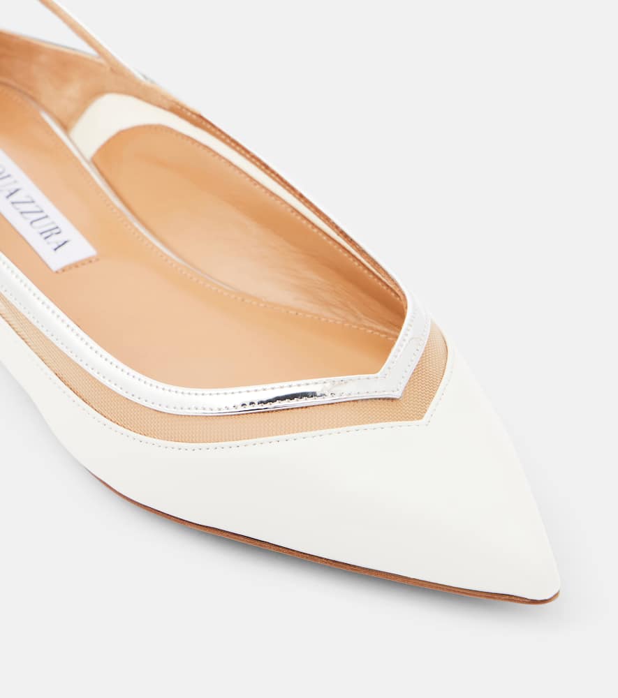 Upper: leather. Lining: leather. Sole: leather insole and sole. Toe shape: pointed toe. Made in Italy. Includes: dust bag, shoe box. Designer color name: White/Silver. Shop the latest Aquazzura Ballet Flats for women now.