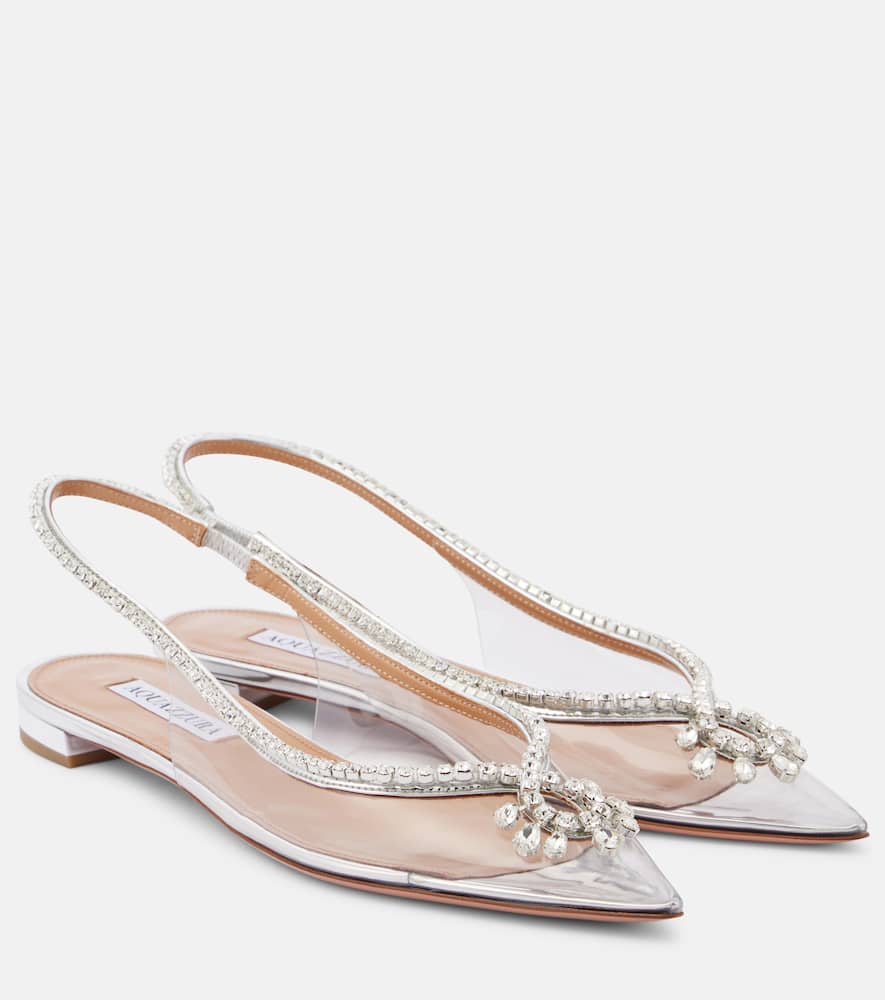 Upper: polyvinyl chloride. Lining: polyvinyl chloride. Sole: leather insole and sole. Toe shape: pointed toe. Made in Italy. Includes: dust bag, shoe box. Designer color name: Silver. Trim: leather. Closure: elasticated strap. Shop the latest Aquazzura Ballet Flats for women now.