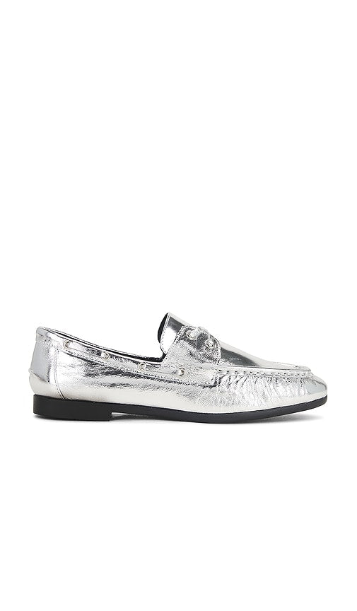 BLACK SUEDE STUDIO Davy Boat Shoe in Metallic Silver