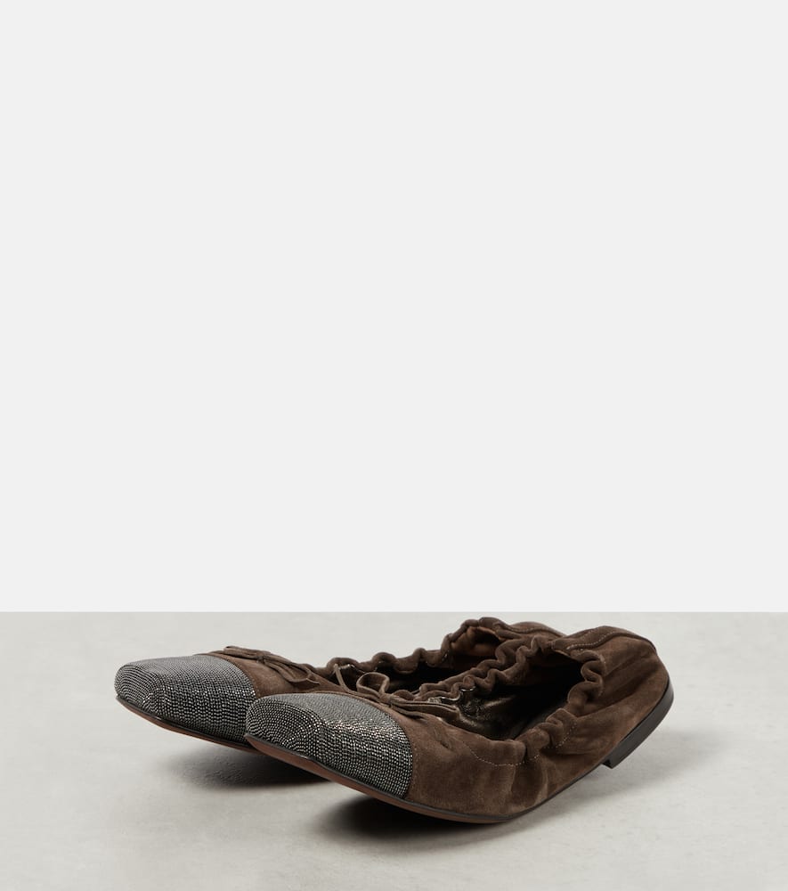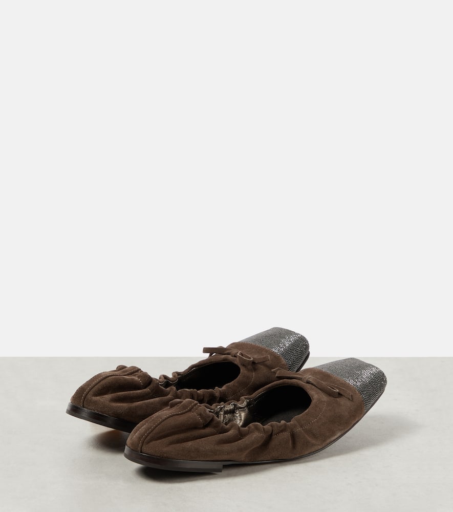 Upper: calf leather. Lining: leather. Sole: leather insole, leather and rubber sole. Toe shape: square toe. Made in Italy. Includes: shoe box, dust bag. Designer color name: Torba. Shop the latest Brunello Cucinelli Ballet Flats for women now.
