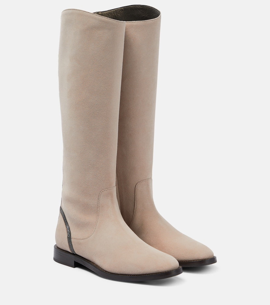 Brunello Cucinelli Embellished suede knee-high boots