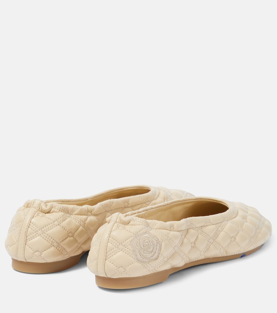 Upper: leather. Lining: leather. Sole: leather insole, rubber sole. Toe shape: square toe. Made in Italy. Includes: dust bags, shoe box. Designer color name: Clay. Shop the latest Burberry Ballet Flats for women now.