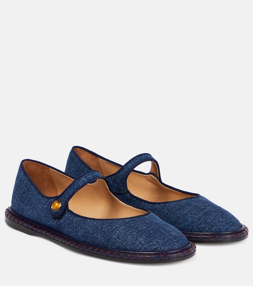 Upper: fabric. Toe shape: round toe. Sole: leather insole and sole. Closure: faux-buckle fastening. Designer color name: Denim. Made in Italy. Comes with dust bag. Shop the latest Chloe Ballet Flats for women now.