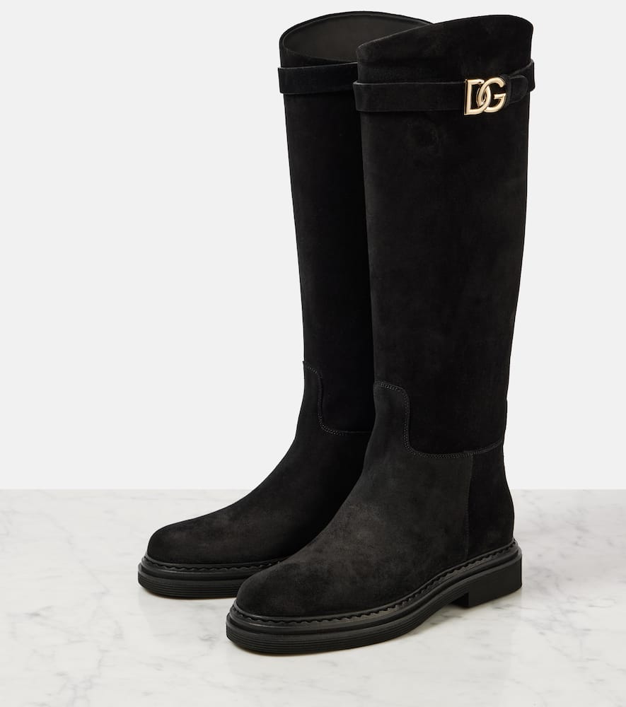 Upper: leather, rubber. Lining: leather. Sole: leather insole, rubber sole. Toe shape: round toe. Made in Italy. Includes: shoe box, dust bag. Designer color name: Nero. Shop the latest Dolce&Gabbana Flat Boots for women now.