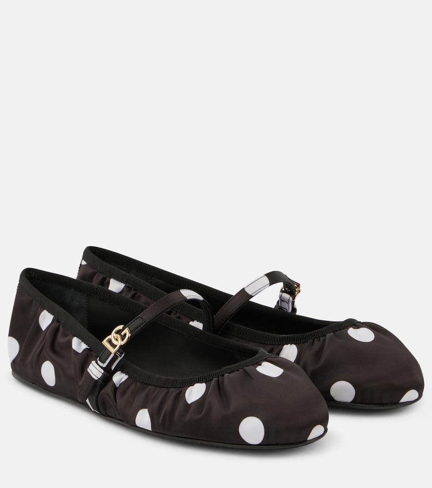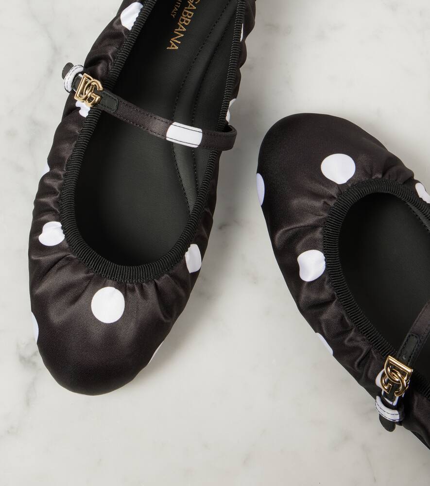 Upper: fabric. Lining: leather. Sole: leather insole and sole. Toe shape: round toe. Made in Italy. Includes: dust bag, shoe box. Designer color name: Pois Med 1,5 F.Nero. Closure: buckle fastening. Shop the latest Dolce&Gabbana Ballet Flats for women now.