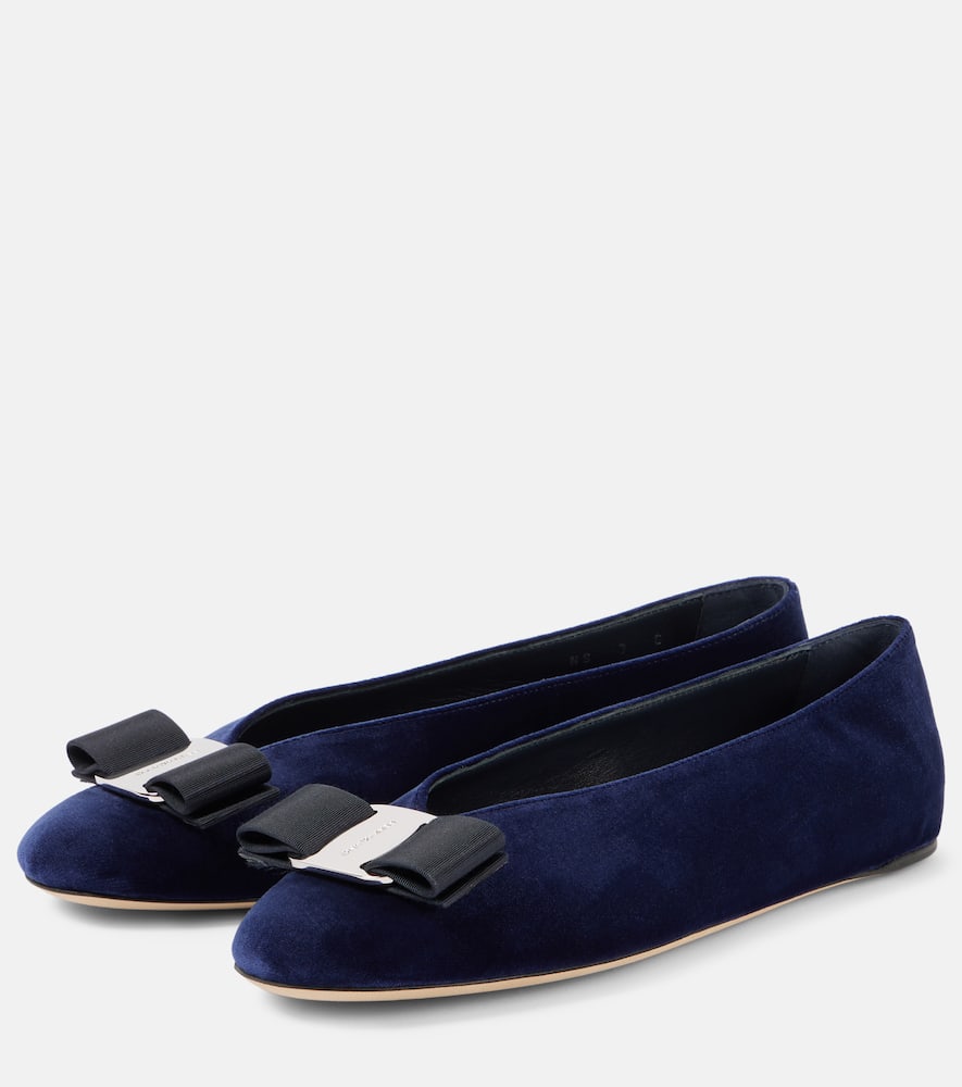 Upper: velvet. Lining: leather. Sole: leather insole and sole. Toe shape: round toe. Made in Italy. Includes: shoe box, dust bags. Designer color name: Night Blue. Shop the latest Ferragamo Ballet Flats for women now.