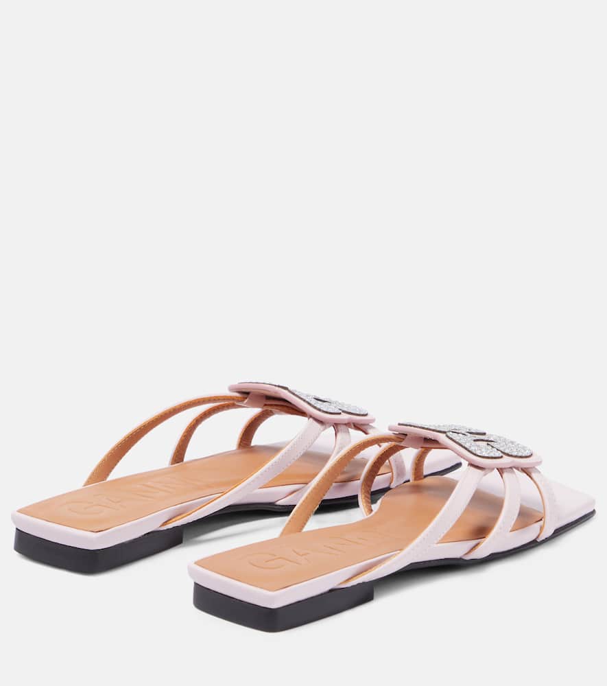 Sole: leather insole, rubber sole. Made in Spain. Toe shape: square open toe. Upper: faux leather. Designer color name: Pale Lilac. Comes with dust bag. Shop the latest Ganni Flat Sandals for women now.