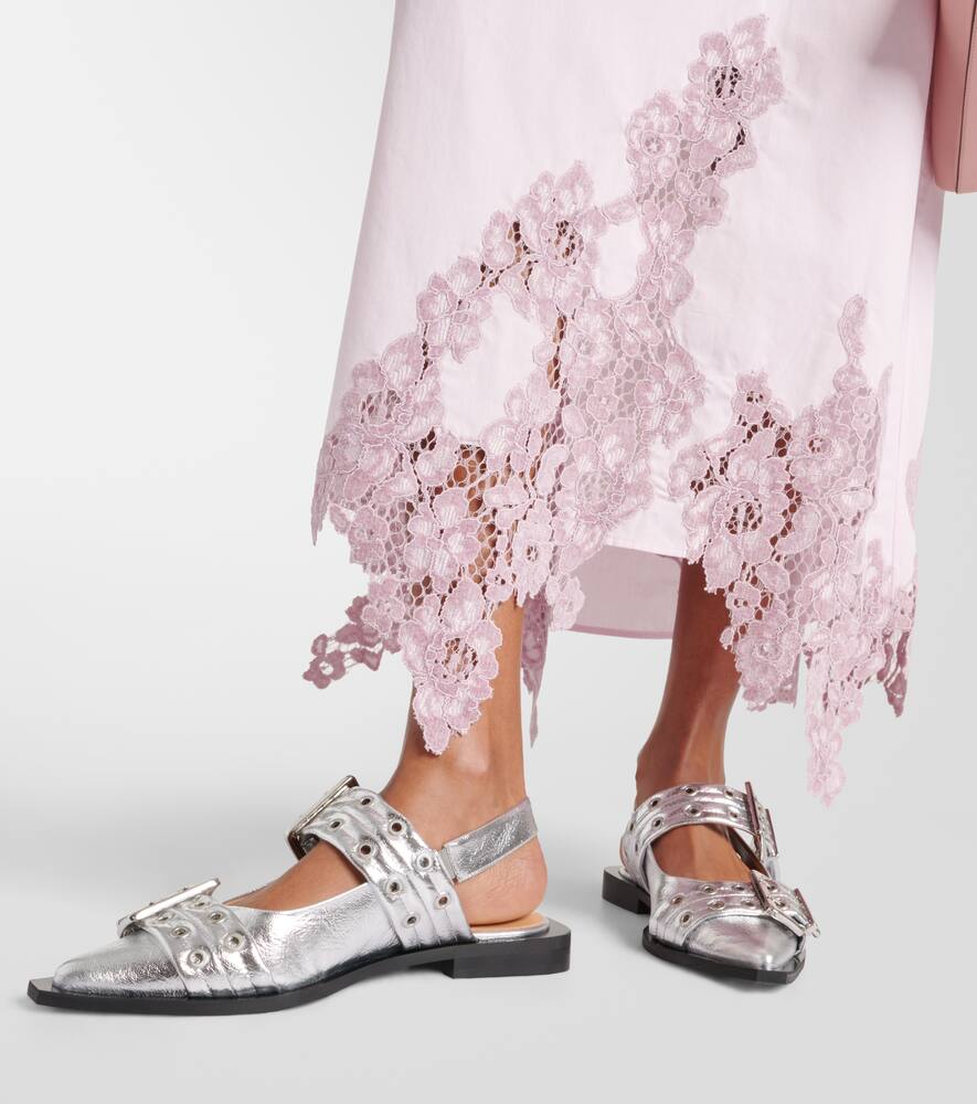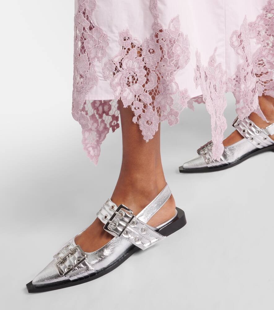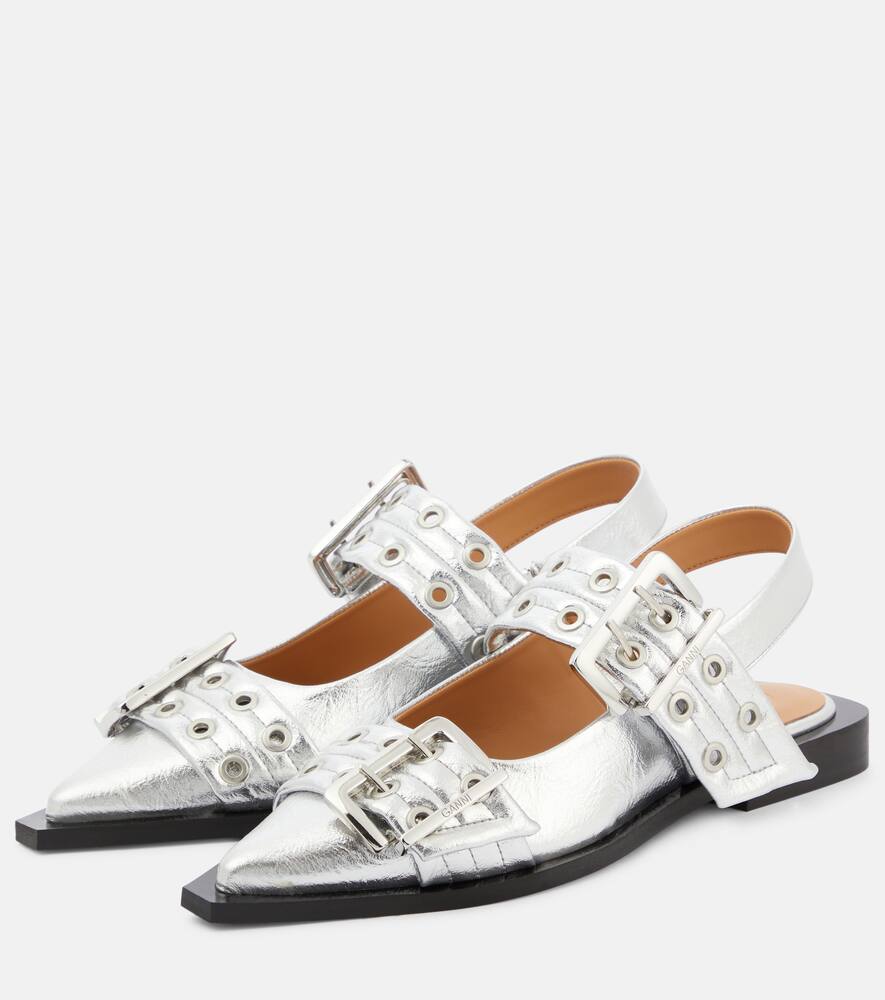 Upper: rubber. Lining: rubber. Sole: rubber insole and sole. Toe shape: pointed toe. Made in Portugal. Includes: shoe box, dust bags. Designer color name: Silver. Shop the latest Ganni Ballet Flats for women now.