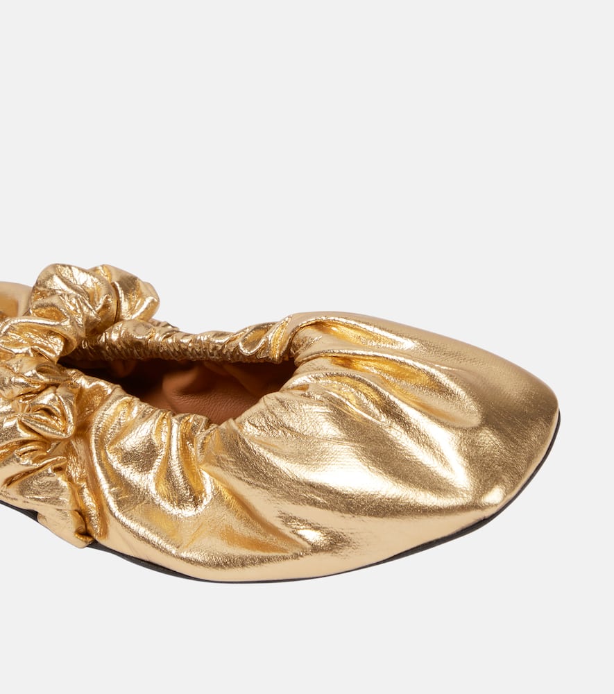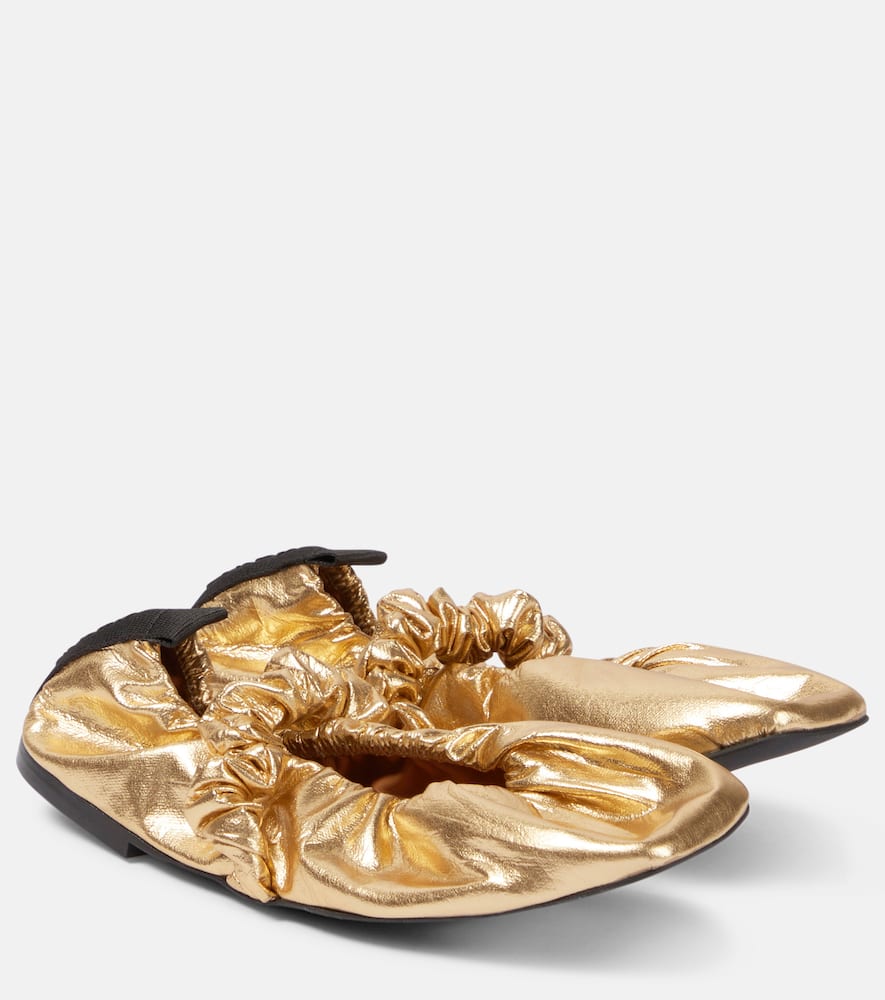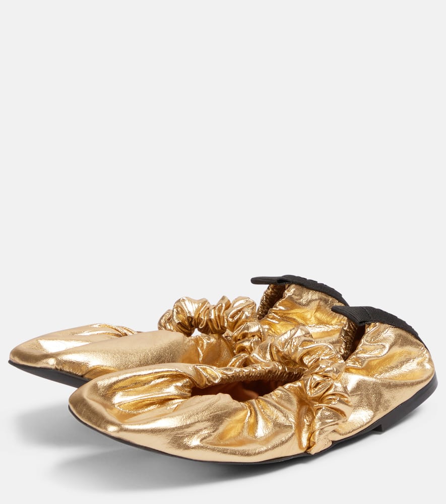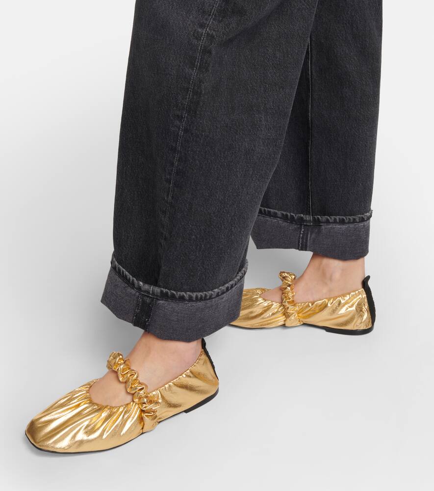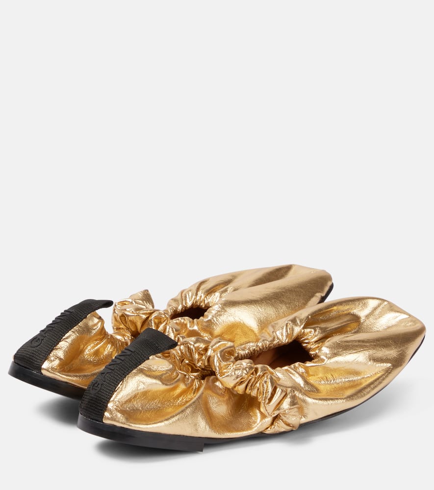 Sole: leather insole, rubber sole. Upper: fabric. Toe shape: square toe. Made in Portugal. Designer color name: Gold. Comes with dust bag. Shop the latest Ganni Ballet Flats for women now.