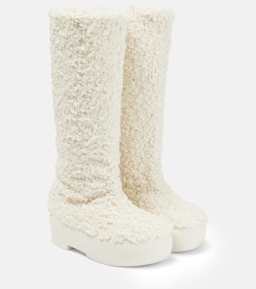 Upper: fabric. Toe shape: round toe. Sole: fabric insole, rubber sole. Comes with a box. Lining: fabric. Designer color name: Ivory. Made in Italy. Comes with dust bag. Shop the latest Gia Borghini Flat Boots for women now.