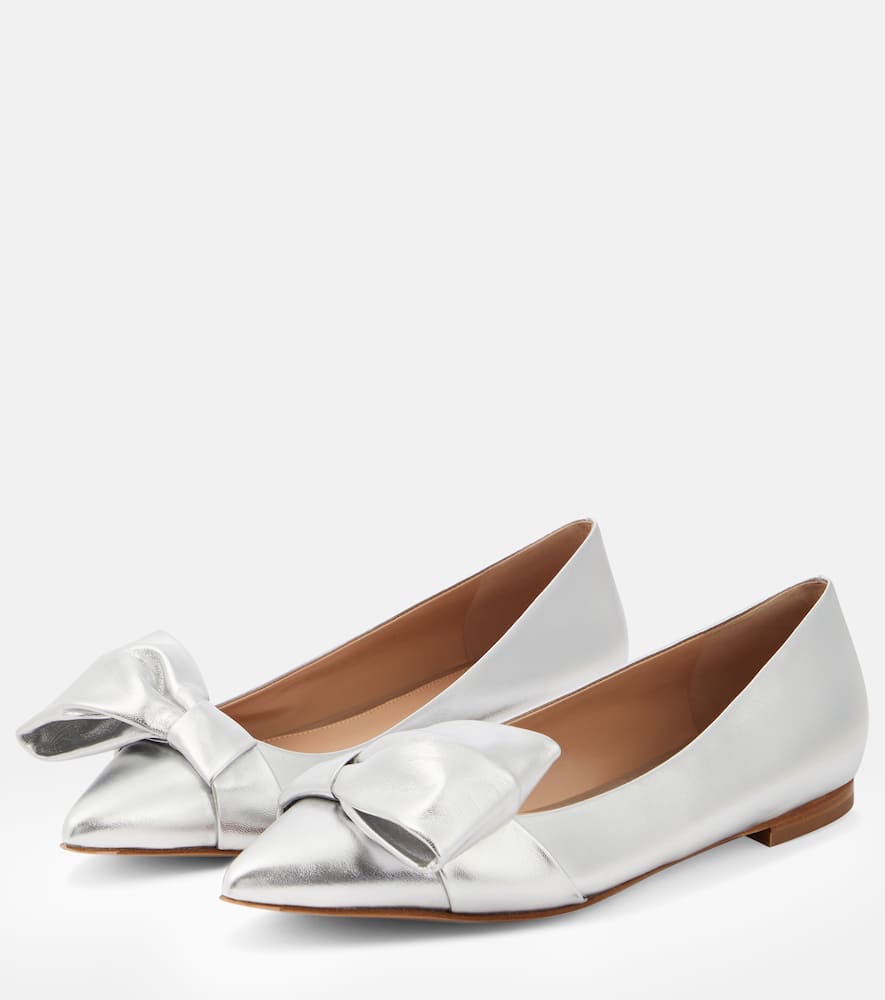 Sole: leather insole and sole. Toe shape: pointed toe. Upper: leather. Comes with a box. Designer color name: Silver. Made in Italy. Comes with dust bag. Shop the latest Gianvito Rossi Ballet Flats for women now.