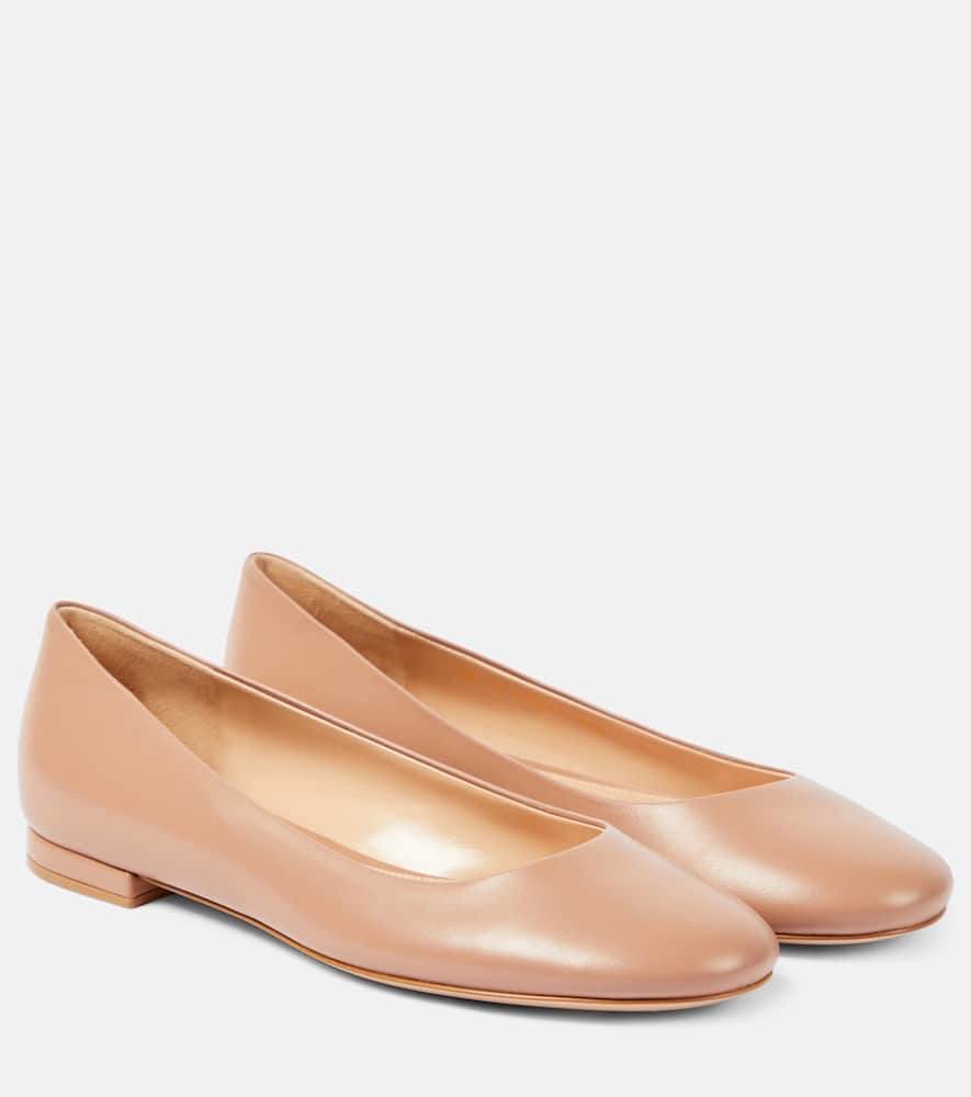 Upper: leather. Lining: leather. Sole: leather insole and sole. Toe shape: round toe. Made in Italy. Includes: shoe box, dust bag. Designer color name: Praline. Shop the latest Gianvito Rossi Ballet Flats for women now.