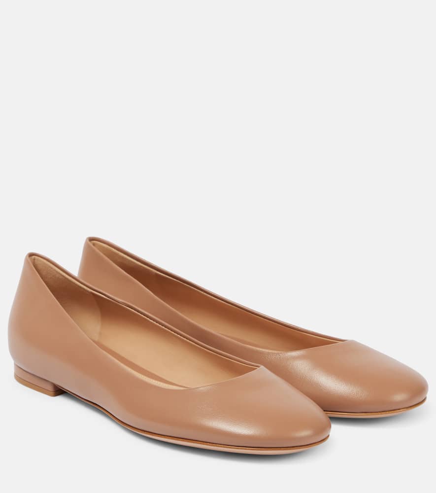 Upper: lamb leather. Lining: leather. Sole: leather insole and sole. Toe shape: round toe. Made in Italy. Includes: dust bag, shoe box. Designer color name: Praline. Shop the latest Gianvito Rossi Ballet Flats for women now.