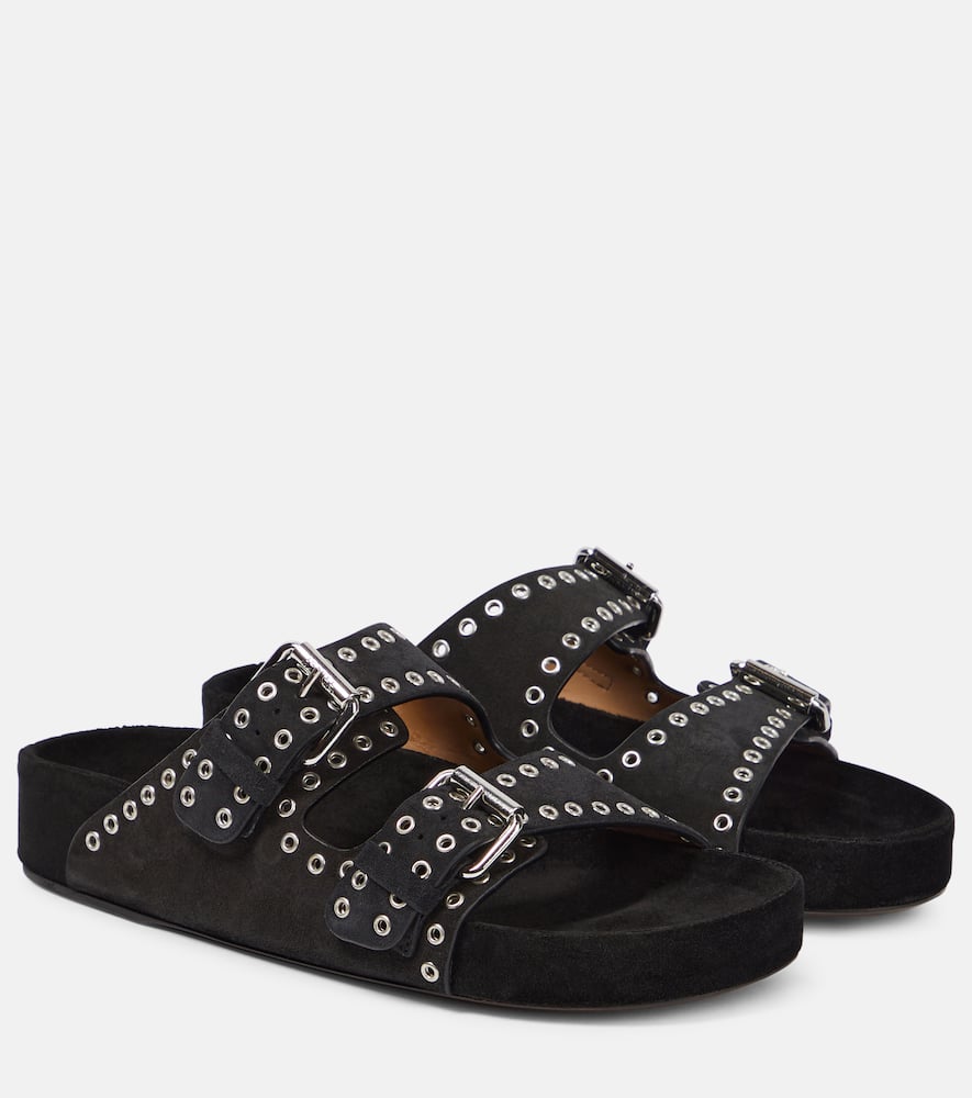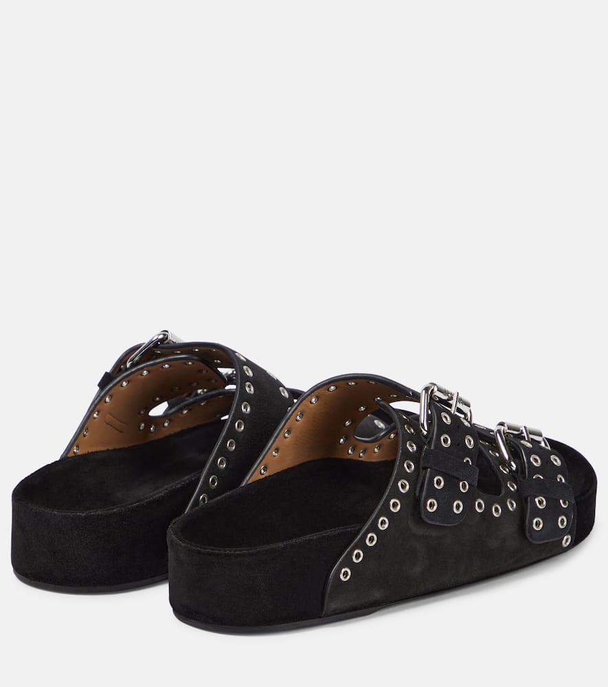 Upper: calf leather. Lining: leather. Sole: leather insole and sole. Toe shape: round open toe. Made in Portugal. Includes: shoe box, dust bag. Designer color name: Faded Black. Shop the latest Isabel Marant Flat Sandals for women now.