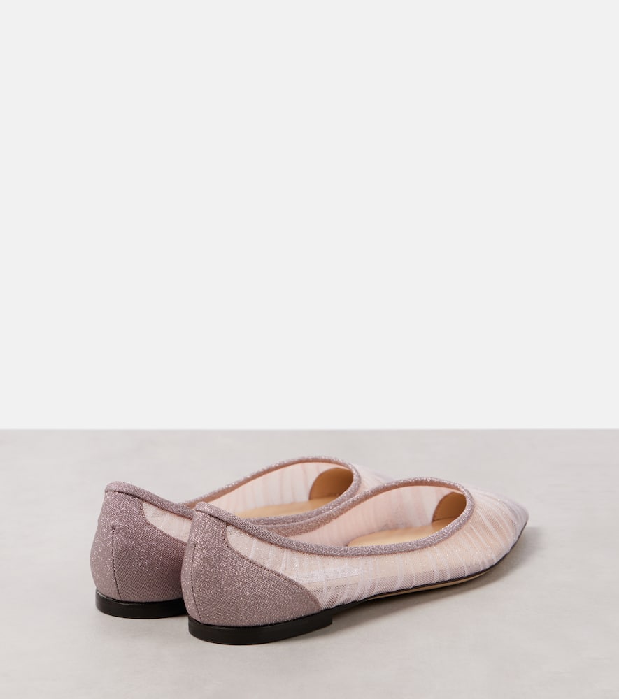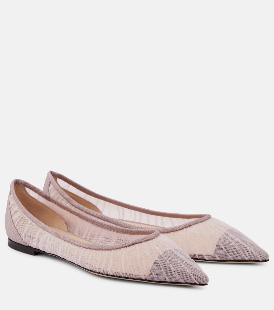 Upper: fabric. Lining: fabric. Sole: leather insole and sole. Toe shape: pointed toe. Made in Italy. Includes: dust bags, shoe box. Designer color name: Rose/Rose. Shop the latest Jimmy Choo Ballet Flats for women now.