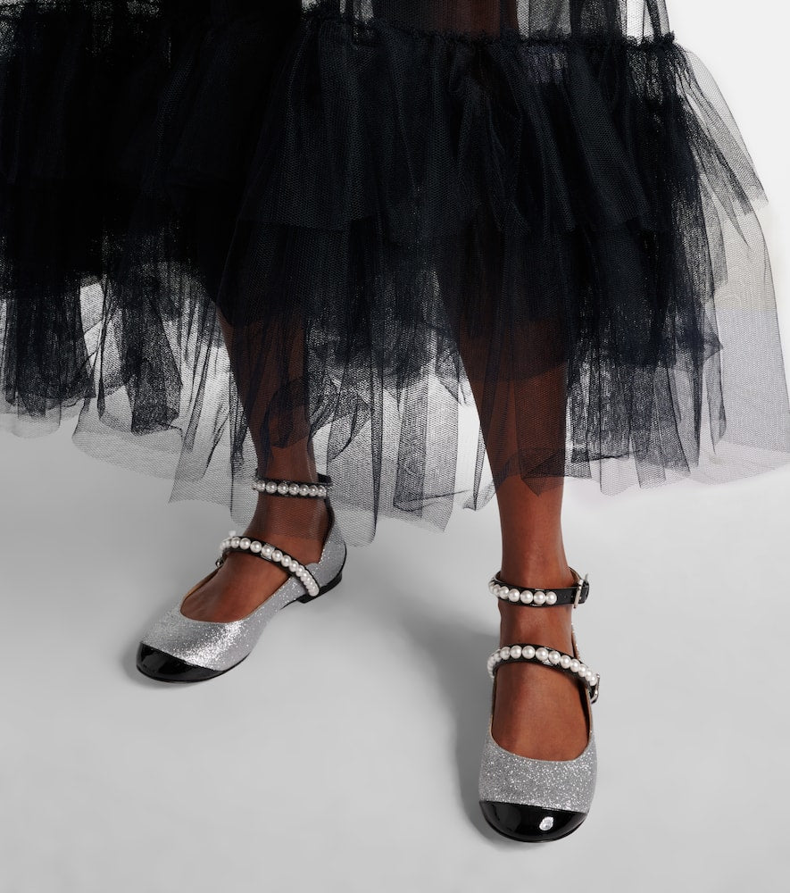 Upper: fabric. Lining: leather. Sole: leather insole and sole. Toe shape: round toe. Made in Italy. Includes: shoe box, dust bag. Designer color name: Silver. Shop the latest Mach & Mach Ballet Flats for women now.