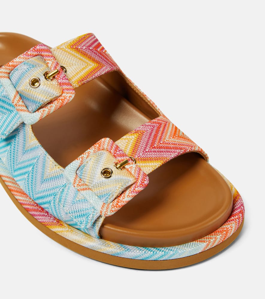 Upper: fabric. Lining: fabric. Sole: rubber insole and sole. Toe shape: round open toe. Made in Spain. Includes: shoe box, dust bags. Designer color name: Multi Yellow-Rose. Shop the latest Missoni Flat Sandals for women now.