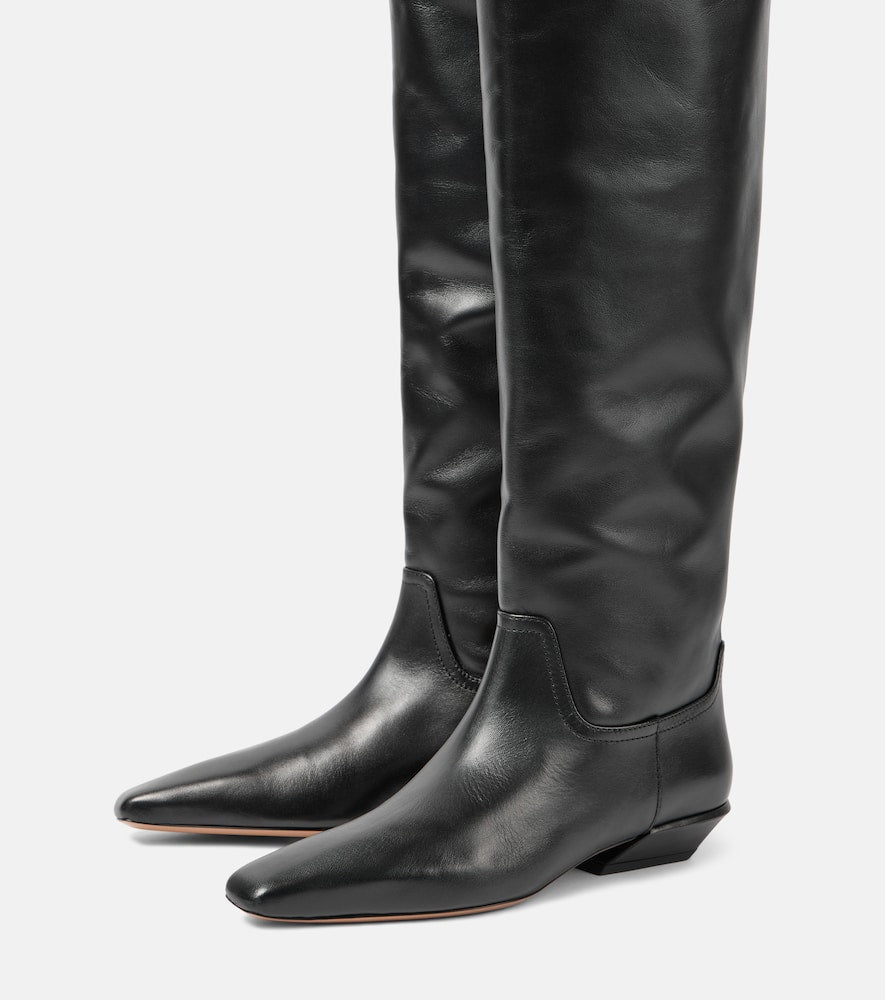 Upper: leather. Lining: leather. Sole: leather insole and sole. Toe shape: pointed toe. Made in Italy. Includes: dust bags, shoe box. Designer color name: Black. Shop the latest Paris Texas Flat Boots for women now.