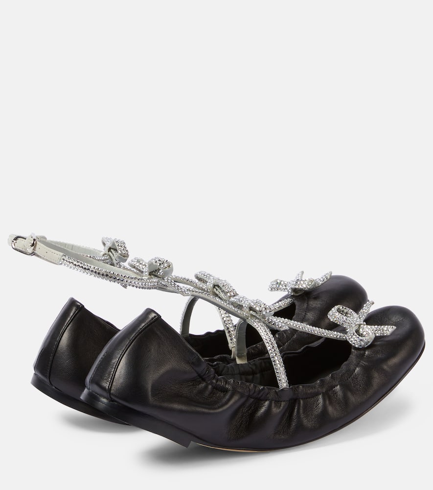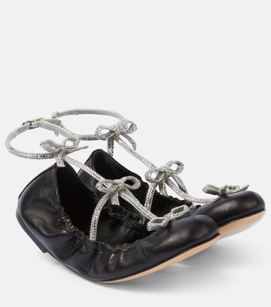 Upper: leather. Lining: leather. Sole: leather insole and sole. Toe shape: round toe. Made in Italy. Includes: dust bag, shoe box. Designer color name: Black Lamb-Grey Satin. Closure: buckle-fastening ankle strap. Trim: glass. Shop the latest Rene Caovilla Ballet Flats for women now.