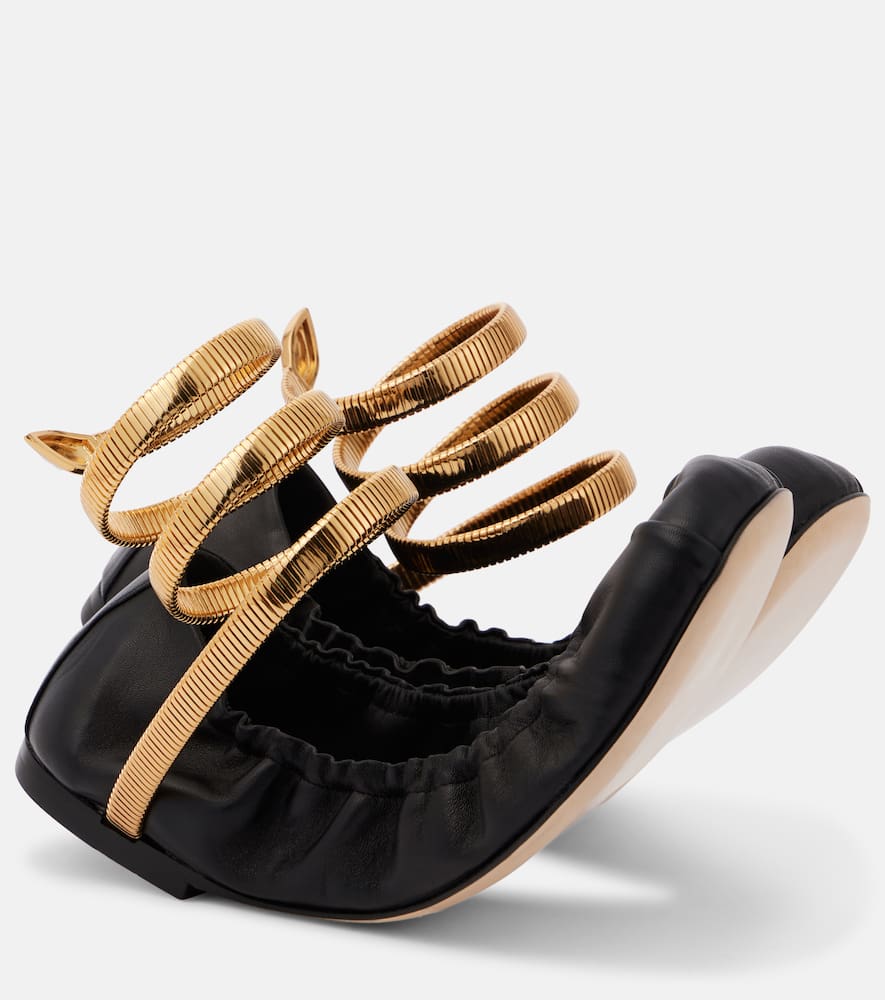 Upper: leather. Lining: leather. Sole: leather insole and sole. Toe shape: round toe. Made in Italy. Includes: shoe box, dust bag. Designer color name: Black Lamb/ Gold Metal Snake. Shop the latest Rene Caovilla Ballet Flats for women now.