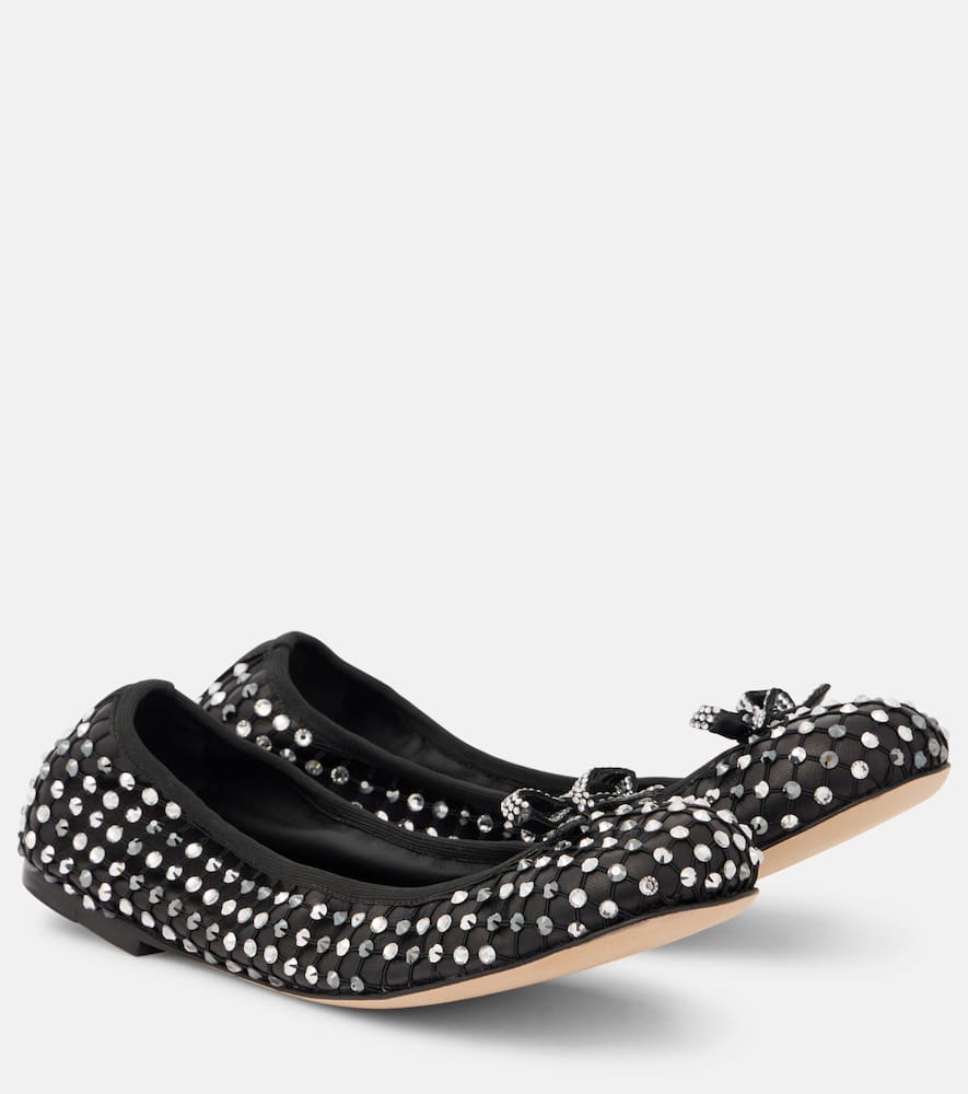 Rene Caovilla Crystal-embellished leather ballet flats
