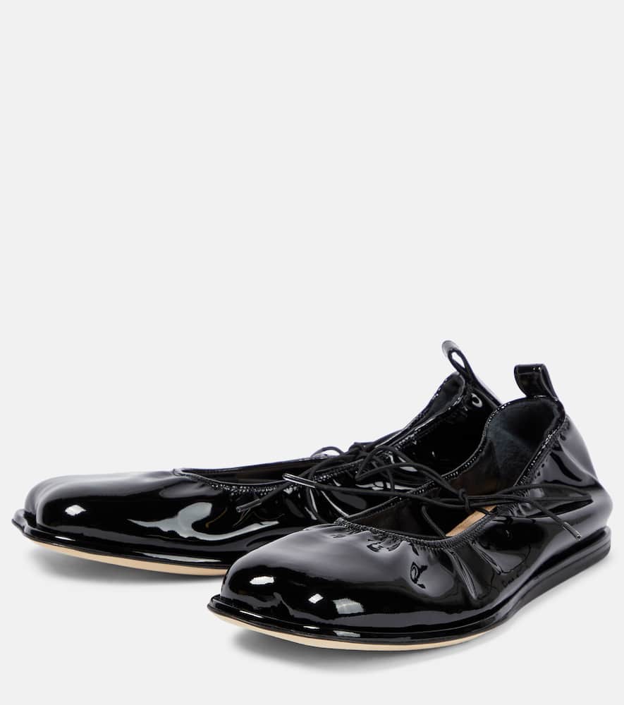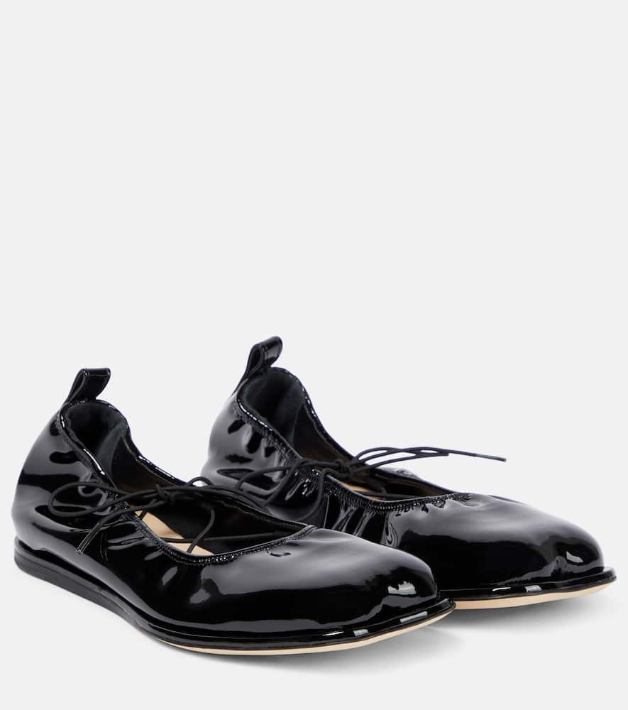 Toe shape: square toe. Sole: leather insole and sole. Made in Portugal. Upper: leather. Designer color name: Black. Closure: lace-up. Comes with a box. Comes with dust bag. Shop the latest Simone Rocha Ballet Flats for women now.